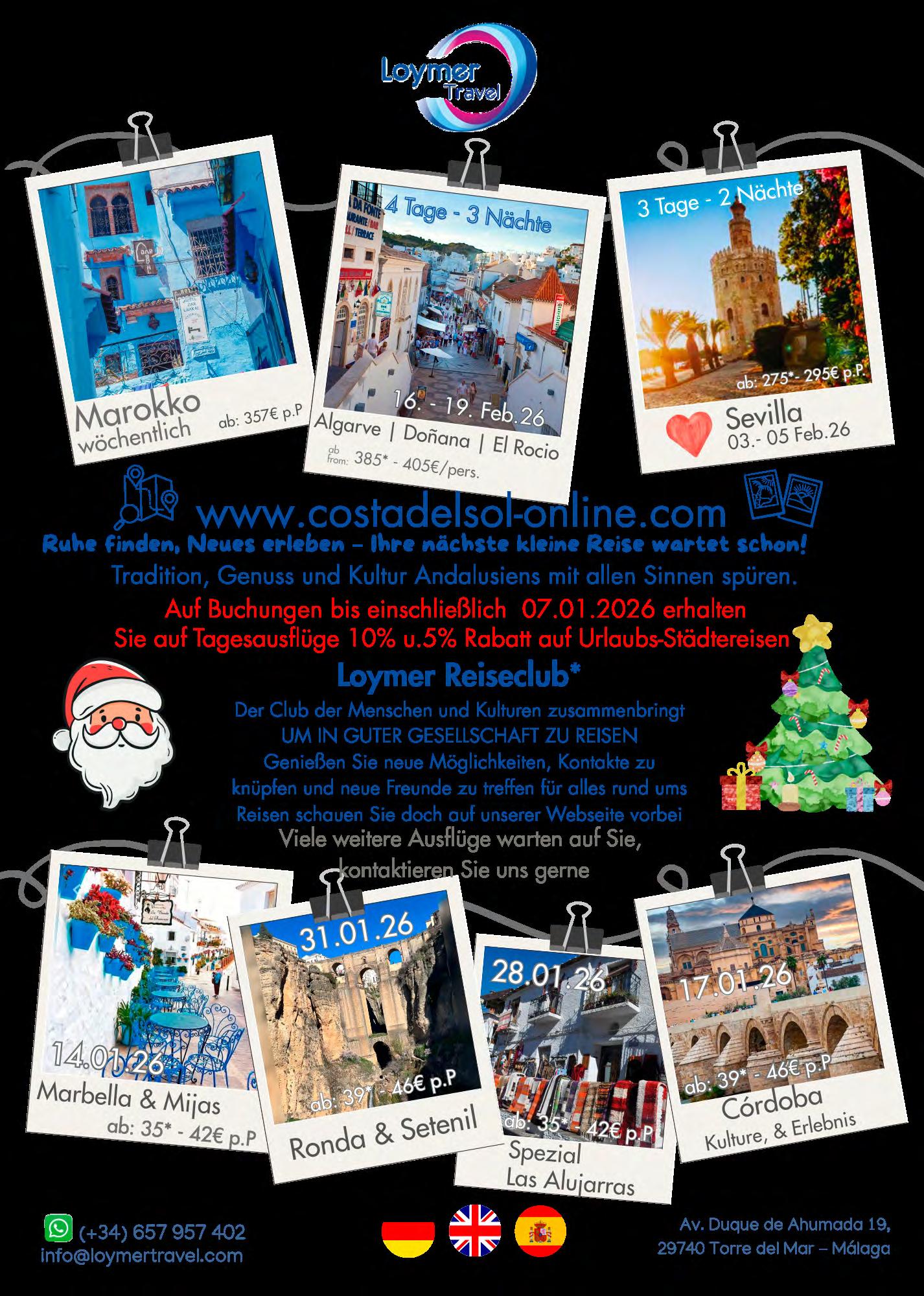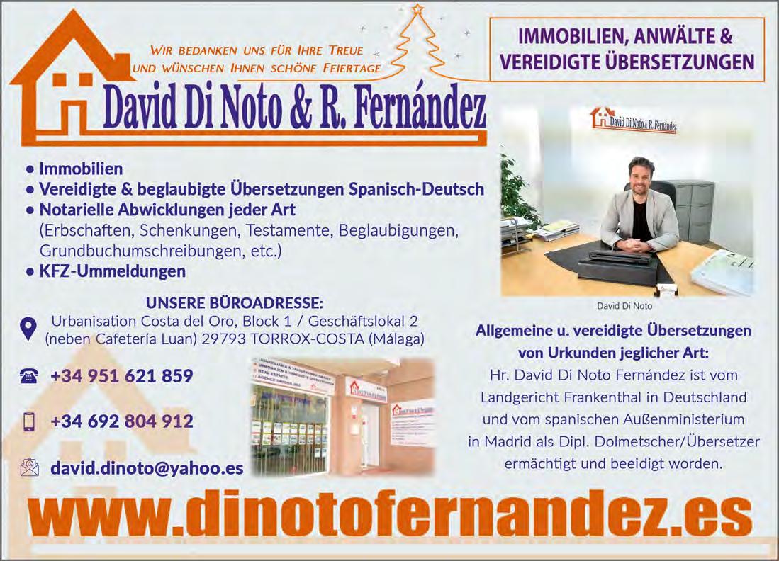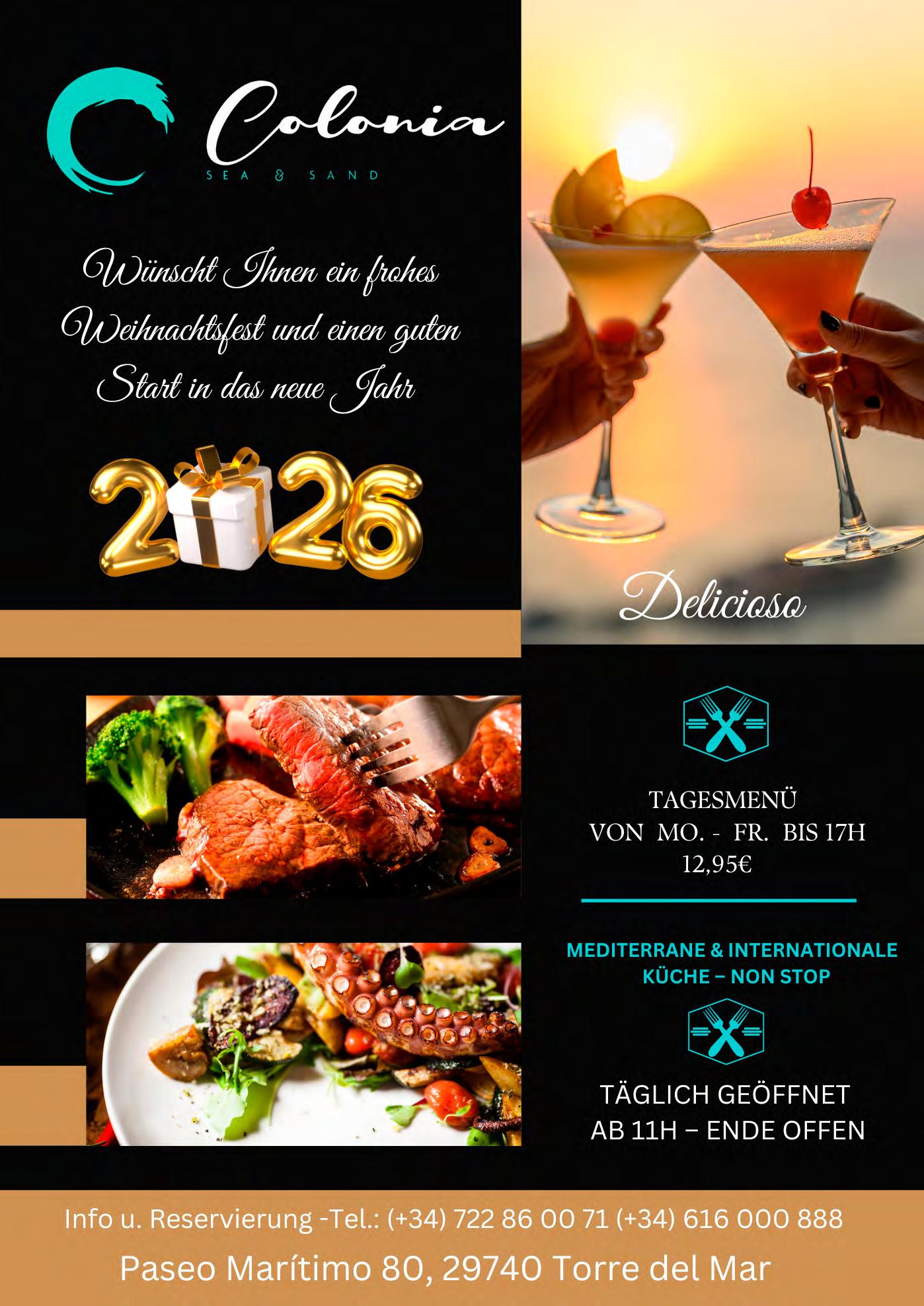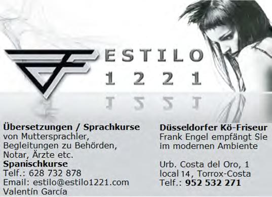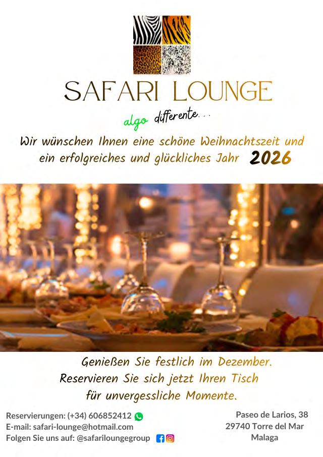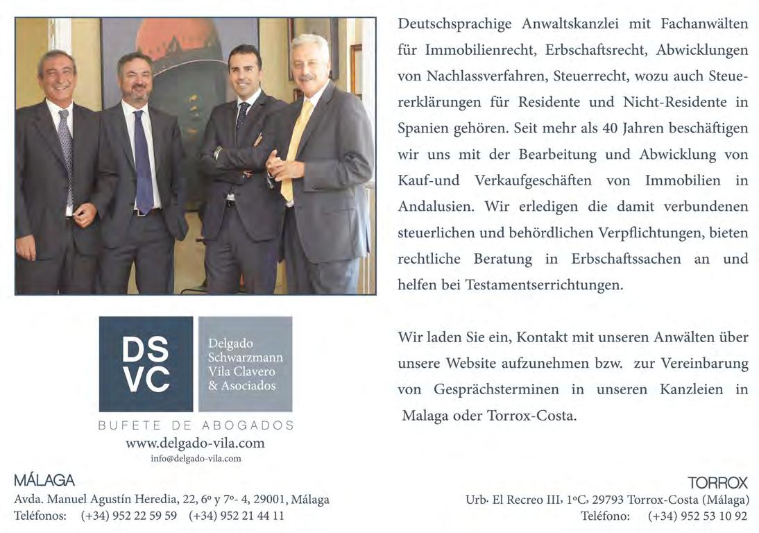 Der Verlag ĂŒbernimmt keine Haftung fĂŒr unverlangt erhaltene Texte, Fotos und Illustrationen. FĂŒr Anzeigentexte ist der Auftraggeber verantwortlich. Leserbriefe oder namentlich gekennzeichnete BeitrĂ€ge geben nicht unbedingt die Meinung des Verlages wieder und können gekĂŒrzt veöffentlicht werden. Alle Informationen und Artikel wurden nach bestem Wissen zusammengestellt. FĂŒr Fehler oder IrrtĂŒmer wird nicht gehaftet. Nachdruck, auch auszugsweise, ist nur mit schriftlicher Genehmigung des Verlages gestattet. Dies gilt auch fĂŒr die Aufnahme in elektronische Datenbanken und VerviefĂ€ltigung auf CD-ROM. DepĂłsito Legal: MA 1759-2014