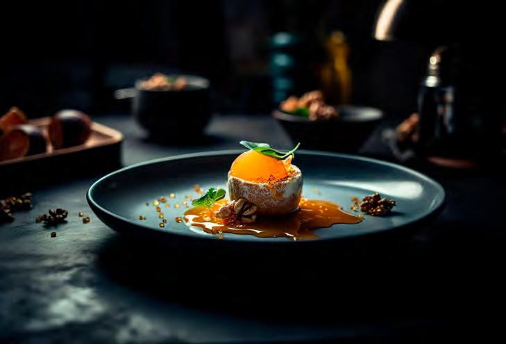 Abgerundet wird das MenĂŒ durch kreative Desserts, die winterliche Aromen und saisonale Zutaten vereinen. Vom gebackenen KĂ€sekuchen mit Himbeere bis zur SĂŒĂkartoffel-Mousse mit Mango-Curry-Eis bieten die Nachspeisen einen eleganten Abschluss, der Tradition und moderne Raffinesse verbindet.