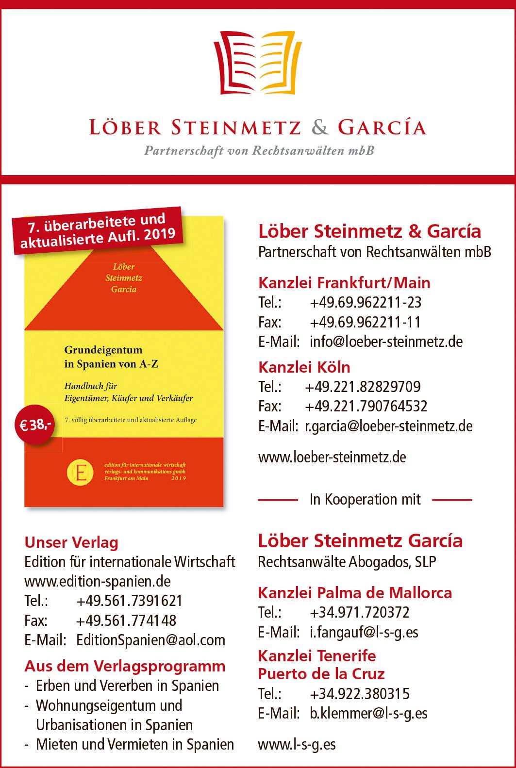In Kooperation mit Löber Steinmetz García Rechtsanwälte y Abogados S.L.P., Mallorca und Teneriffa, Tel. +34 971 72 03 72, Tel. +34 922 38 03 15