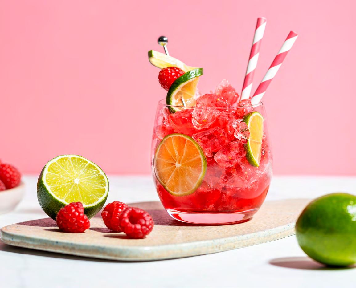 Beeren mit Freixenet Mía 0,0% Rosado, der für die perfekte Slushie-Konsistenz in Eiswürfelformen vorgekühlt wird. Ein Spritzer Limettensaft sorgt für eine angenehme Säure, während Zuckersirup nach Belieben für Süße sorgt. Ob als erfrischendes Highlight beim Garten-Picknick oder als stylischer Hingucker bei der nächsten Girls‘ Night– dieser Drink bringt SommerFeeling ins Glas!