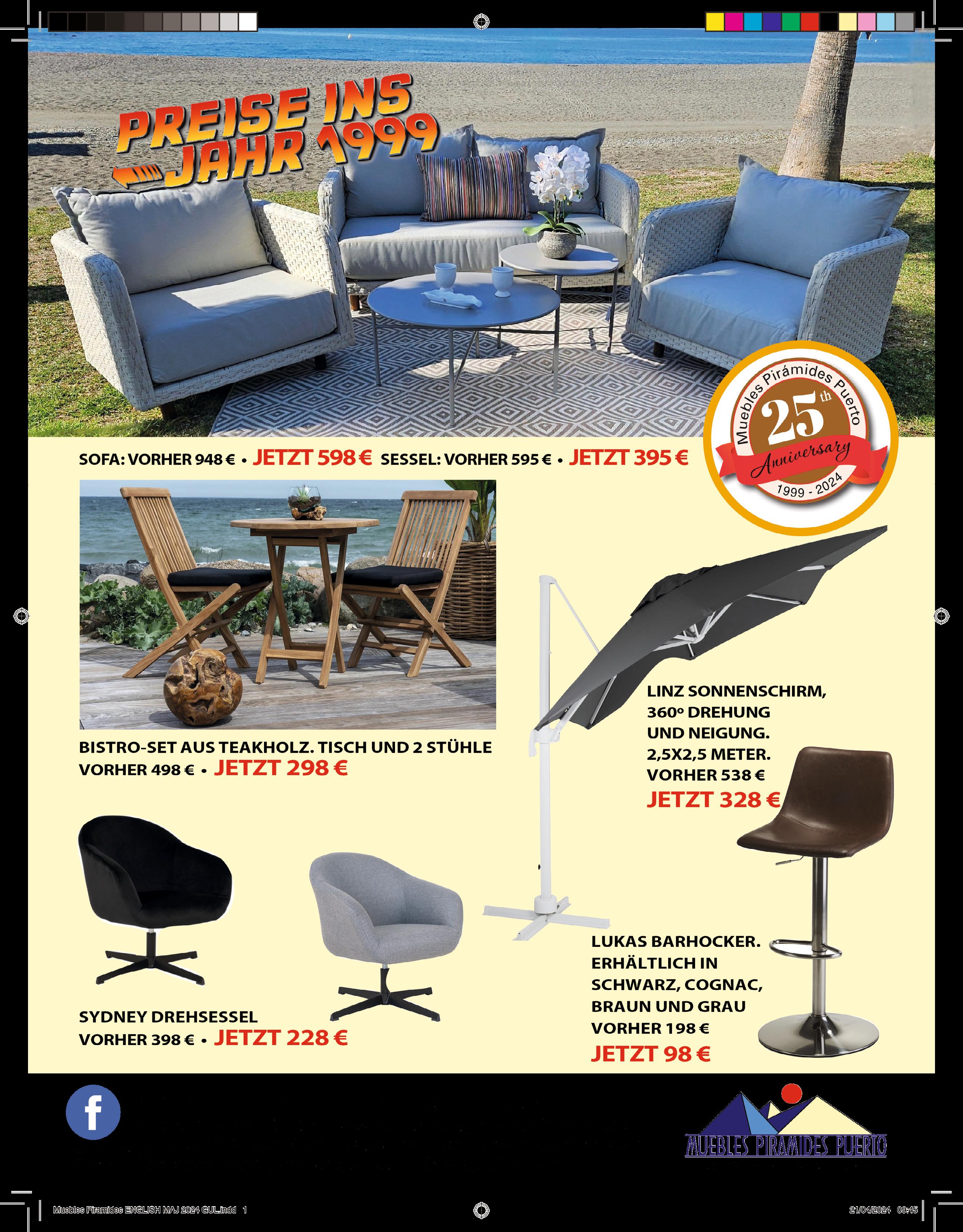 Seit einem Vierteljahrhundert steht Muebles Piramides Puerto für hochwertige dänische Möbel und Einrichtungsgegenstände zu fairen Preisen auf einer Fläche von 1.200 m². Unter dem Motto „Preise ins Jahr 1999" möchten wir unser 25-jähriges Jubiläum mit Ihnen feiern, indem wir das ganze Jahr über monatliche Angebote präsentieren, die Sie mit den unschlagbaren Preisangeboten von damals begeistern werden. Seit unserem Start im Jahr 1999 haben wir uns zum Ziel gesetzt, stilvolle dänische Möbel, Matratzen und Dekorationsartikel zu spanischen Preisen anzubieten. Auch heute, nach einem Vierteljahrhundert, halten wir an diesem Versprechen fest und freuen uns, Ihnen weiterhin die besten Produkte und den besten Service zu bieten. Unser erfahrenes Team steht Ihnen seit Beginn unserer Reise zur Seite und kennt die Wünsche unserer Kunden genau. Wir liefern nicht nur entlang der Küste von Salobreña bis Marbella und Estepona kostenlos, sondern bieten auch Lieferungen im gesamten spanischen Raum an. Ihre Zufriedenheit steht für uns an erster Stelle, und wir sind stolz darauf, Ihnen bei der Verwirklichung Ihrer Einrichtungsträume zu helfen.