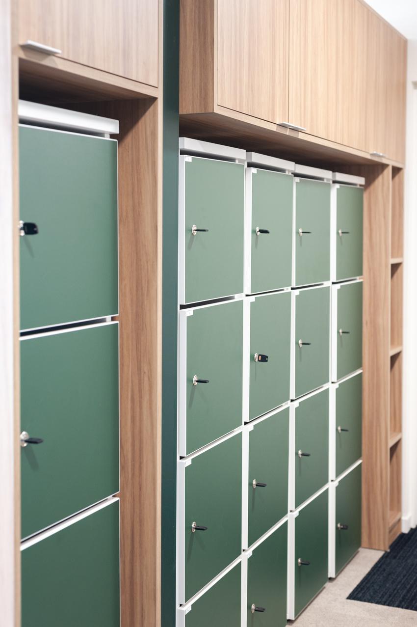 L’environnementdetravailaétéconçudansdestonsvertset nosspécialistesontfournidumobilierdebureauadaptépour plusieurspostesdetravail.