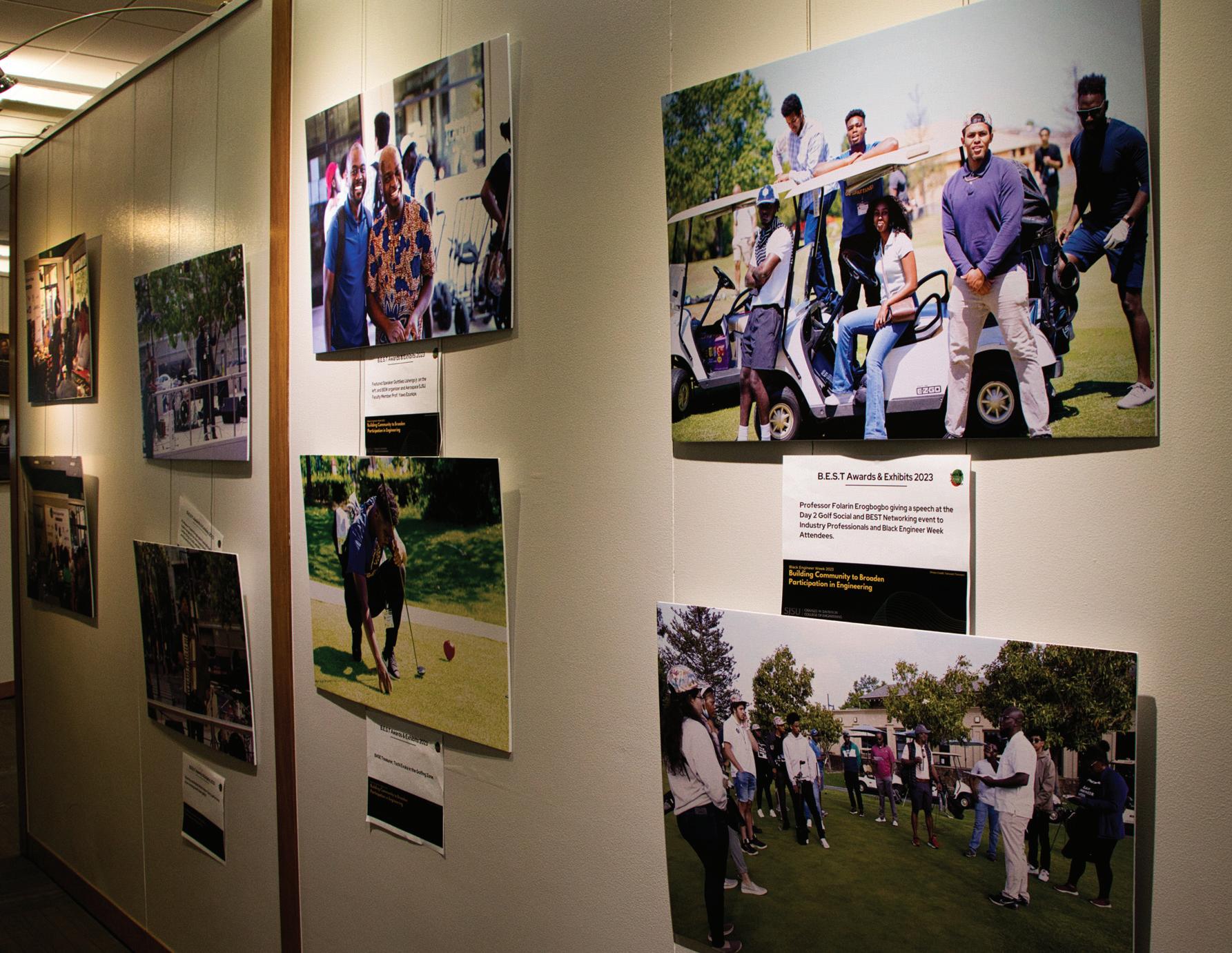 ENRIQUE GUTIERREZ-SEVILLA | SPARTAN DAILY Photos of Black engineers line the wall during the Black Engineers Week Exhibit at MLK Library.