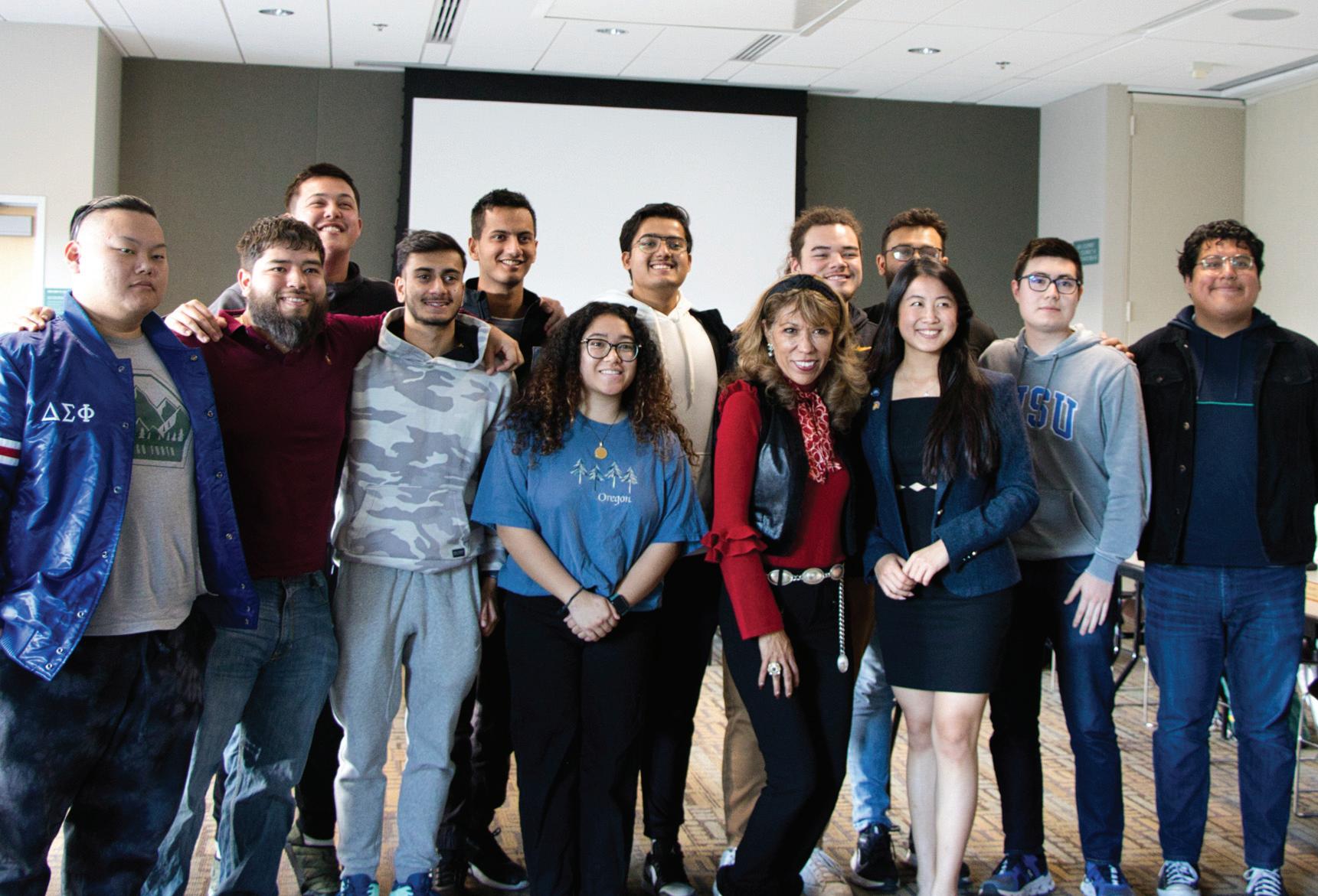 Associated students board of directors members pose for a picture with SJSU President Cynthia Teniente-Matson after Wednesdayâs meeting in the Student Union.