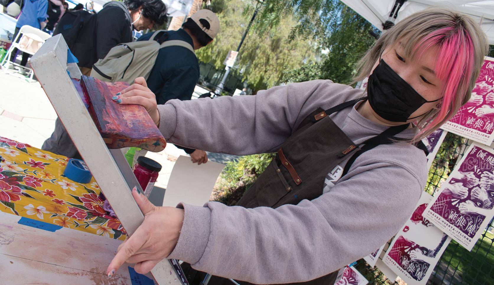 Craft and club stalls lined the corridor in front of the Arch of Dignity, Equality, and Justice, a monument constructed next to the Student Union Building by Chicana artist Judy Baca in commemoration of Chavez’s life.
