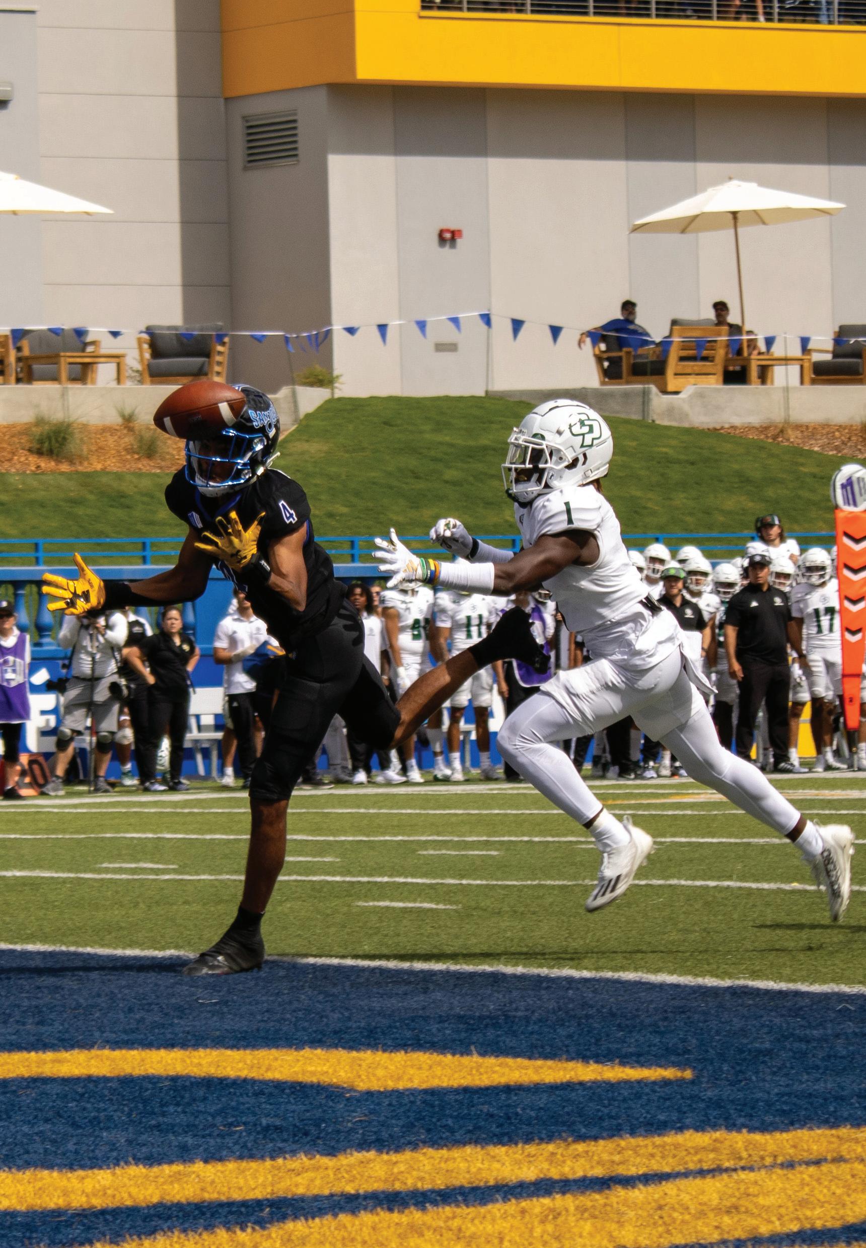 SJSU junior wide receiver Charles Ross catches his first touchdown pass of the season putting the Spartans up 37-0 at CEFCU Stadium.