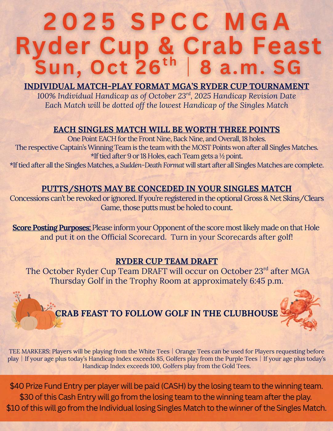 October 25: MGA’s Ryder Cup Event and Crab Feast [8 a.m. Shotgun Start]