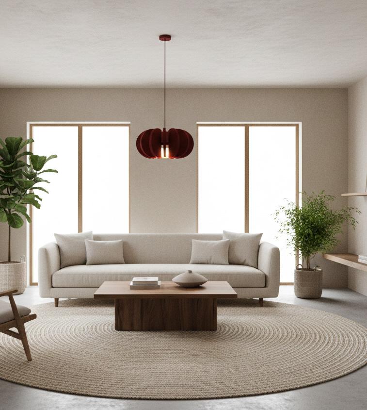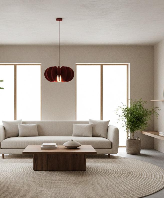 inspired by the pomegranate fruit, the pom burst pendant light is a luminaire appropriate for both residential and commercial use that distributes ambiant, efficient lighting and contributes to acoustical performance.