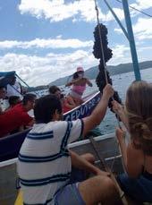 Inclui: embarcação, guia e representante da MAPEC. Almoço não incluso. Cardápio à escolha com antecedência: lambe-lambe, azul-marinho, peixe frito, sempre acompanhado de bolinho de mexilhão, salada, arroz e suco.