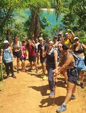 A experiência é conduzida pelos guias da Terra das Tribos, credenciados pelo Ministério do Turismo e especializados na história natural e cultural de Ubatuba. Ao longo do percurso, o grupo para para banhar-se no mar, fotografar, descansar e ouvir histórias sobre o ecossistema da Mata Atlântica e a cultura caiçara que moldou esse litoral. O ritmo é conduzido para que todos aproveitem cada trecho sem pressa.