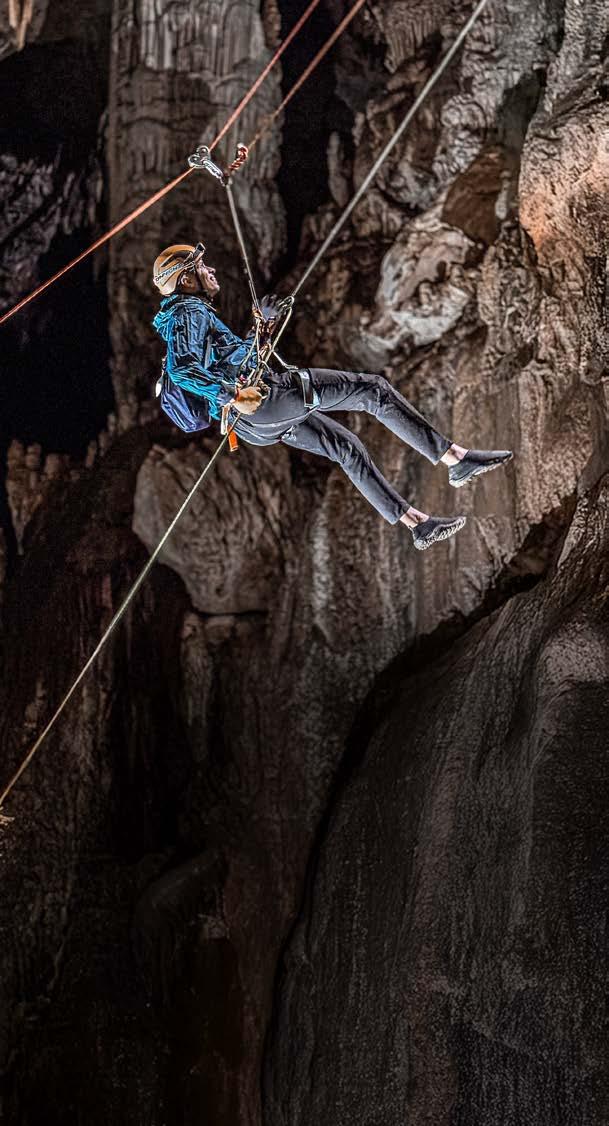 A expedição de cinco dias, conduzida pela Parque Aventuras com guias locais especializados, percorre os pontos mais impressionantes da região. As cavernas Santana, Couto e Morro Preto revelam salões subterrâneos com formações geológicas milenares, rios internos e silêncios que impressionam. A Caverna Água Suja e a monumental Caverna do Diabo ampliam o roteiro com cenários de escala difícil de descrever sem ter visto. Para quem busca mais adrenalina, o roteiro inclui rapel com flutuação na Caverna Lago Suspenso e boia cross no Rio Betari.