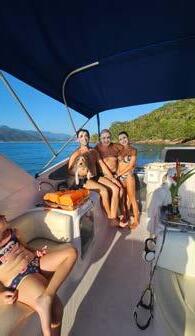 Inclui: recepção com chá, condução por anfitriã e marinheira, combustível, passeio de lancha, coletes homologados pela Marinha do Brasil, argila para prática de bem-estar, água, gelo e frutas. Não inclui bebidas alcoólicas e transporte até o local.
