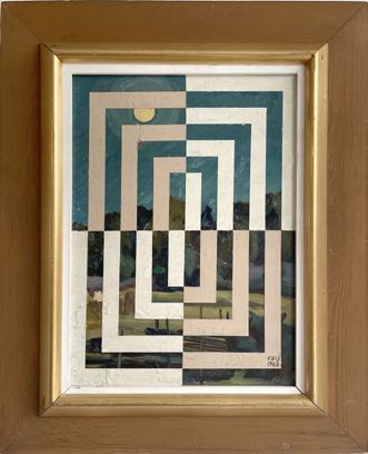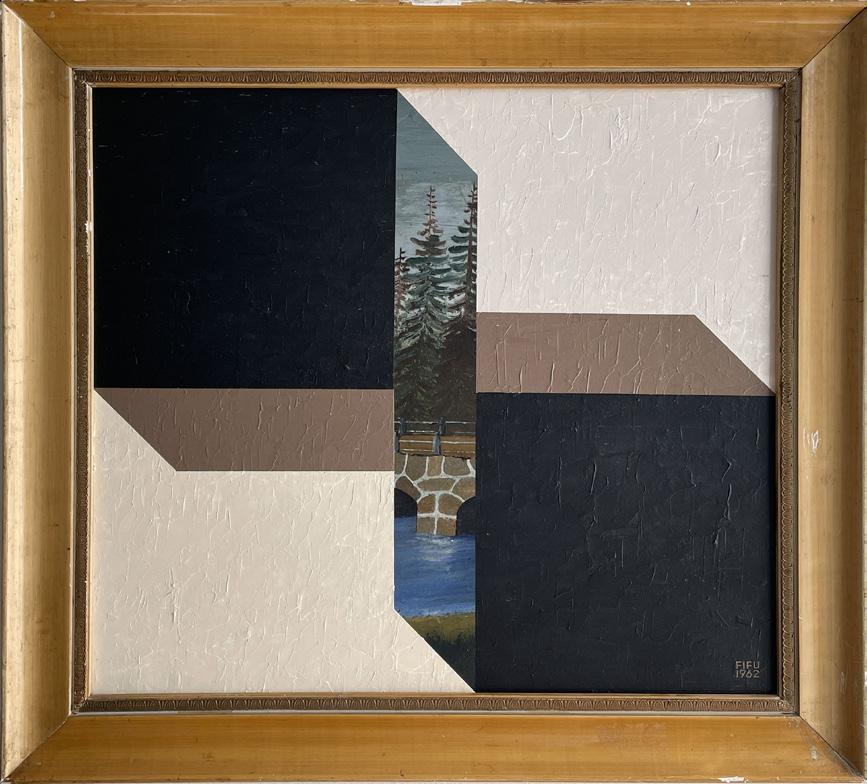 FIFU I962 047 63cm x 50cm acrylic on canvas / vintage frame