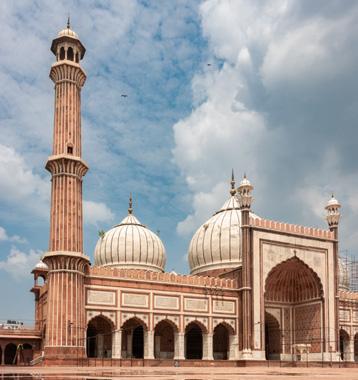 This morning we bask in the richness of Old Delhi with a visit to the red stone marvel that is the UNESCO-listed Lal Qila (“Red Fort”). Built by Sha Jahan, this 254-acre site embraces palaces, entertainment halls, indoor canals, and geometrical gardens and its name derives from the rich red sandstone of its massive walls. We then move on to another of Sha Jahan’s constructions: the great Jama Masjid. India’s largest mosque, the Jama Masjid is a red-sandstone-and-marble oasis of calm, with minarets rising high above the city and has the capacity for 25,000 worshippers. After breaking for lunch, we enjoy an in-depth visit to the city’s