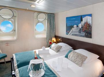 The MS Camargue is a premium rated ship, comparable to a 4* hotel, and boasts bright and spacious interiors. The Upper Deck has two main areas; the lounge and bar towards the bow of the ship, and the restaurant towards the stern. Cabins are 14m² in size and include a TV, telephone (for internal calls), safe, independent airconditioning, electricity 220V, Wi-Fi, en-suite bathroom with shower and toilet, hairdryer, a selection of bath products and towels.