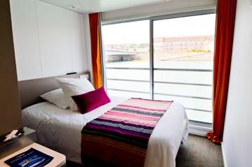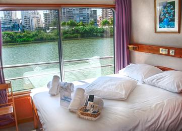 The MS Camargue is a premium rated ship, comparable to a 4* hotel, and boasts bright and spacious interiors. The Upper Deck has two main areas; the lounge and bar towards the bow of the ship, and the restaurant towards the stern. Cabins are 14m² in size and include a TV, telephone (for internal calls), safe, independent airconditioning, electricity 220V, Wi-Fi, en-suite bathroom with shower and toilet, hairdryer, a selection of bath products and towels.