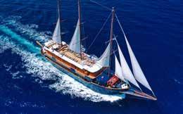 This mega yacht is of a classic wooden design, 157ft in length, and with the right winds her sails can be spreadan authentic way to cruise the Greek coastline. Facilities include a spacious indoor lounge/bar, a small library and dining area, and the Upper Deck has shaded areas as well as an outdoor bar. Wi-Fi is available in cabins and public areas (payable locally). The 24 ocean view cabins on board are split between the Upper Deck (with large porthole windows) and Lower Deck (with small portholes) and amenities include an ensuite bathroom with shower, airconditioning, flat-screen TV, mini fridge, internal telephone, safe and hairdryer.