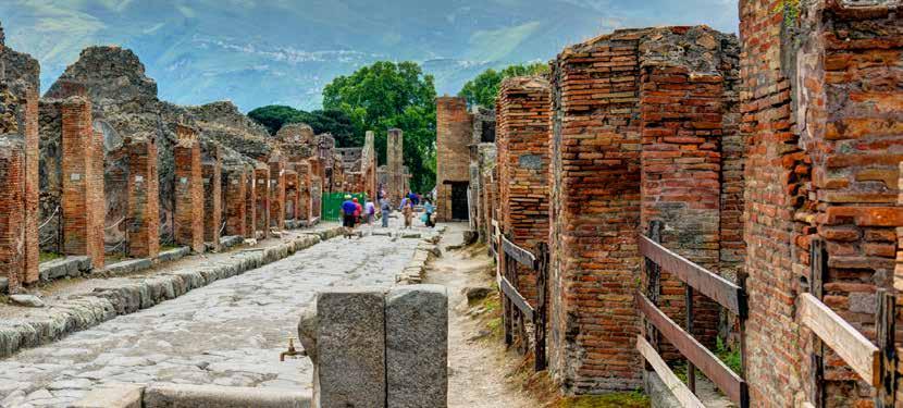 What is staggering about Italy’s cultural remains is not just the sheer number of them – 53 cultural World Heritage Sites and 31 tentative World Heritage Sites – but the wonderful variety. From the white-tipped peaks of the Dolomites to the orange groves at the foot of Mount Etna, this destination offers a unique insight into our cultural past, not just because it is the homeland of the Eternal City but because it hosts such a rich collection of archaeological sites, including the worldfamous, utterly breathtaking Vesuvian towns.