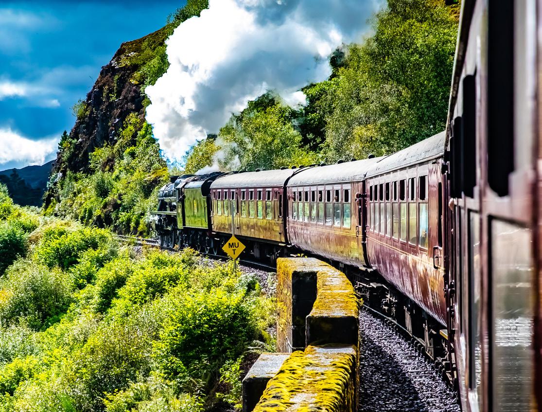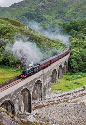 A treat lies in store as we ride aboard the Jacobite steam train forging over the Glenfinnan Viaduct to Mallaig, following ‘The Road to the Isles’. (B, D)
