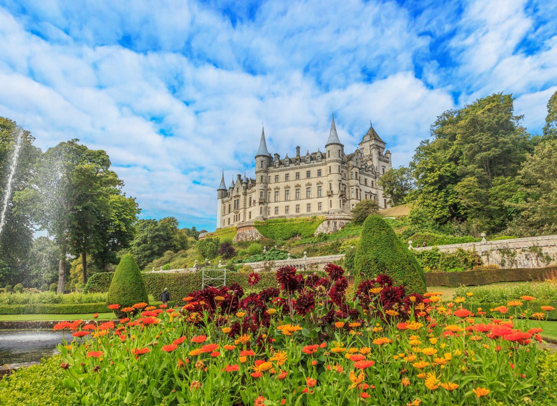 Some of Scotland’s most attractive gardens and artistic treasures await. Dumfries House in Ayrshire, saved with the support of King Charles, shines with superb Adam interiors, a unique Chippendale collection and an outstanding walled garden. At Broughton House, we enjoy EA Hornel’s Japaneseinfluenced artist’s garden, while Drumlanrig Castle impresses with its extensive grounds, fine art and Renaissance grandeur.