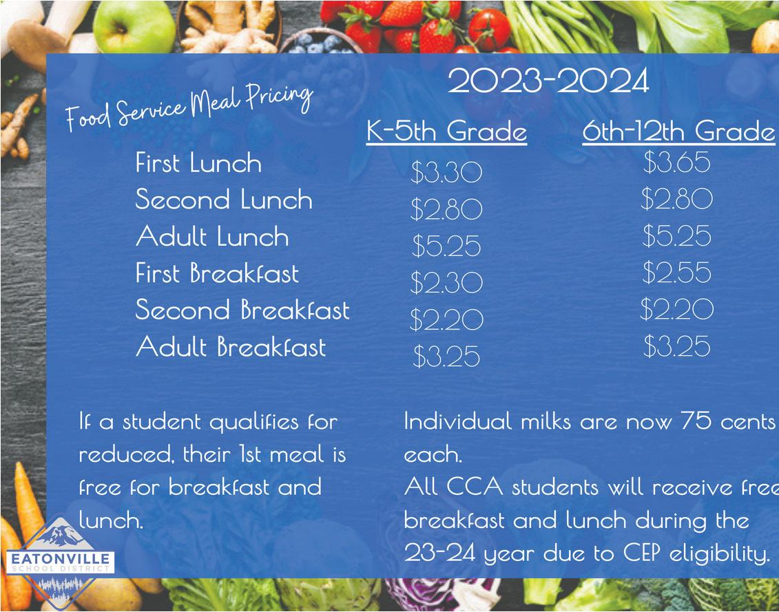 • School meal prices have increased. Please note the changes on the attached graphic.