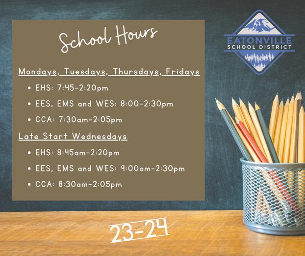 See other important dates by downloading the calendar for the year at https://www.eatonville. wednet.edu/calendars