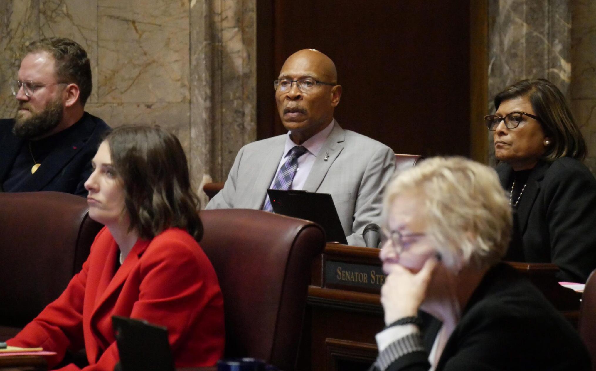 State Sen. John Lovick, D-Mill Creek, looks on toward the end of the roll call vote for his Senate Bill 5067, which would lower the blood alcohol limit for drunk driving to 0.05% from 0.08% in Washington. The bill passed the Senate on a 26-23 vote on Jan. 28, 2026.