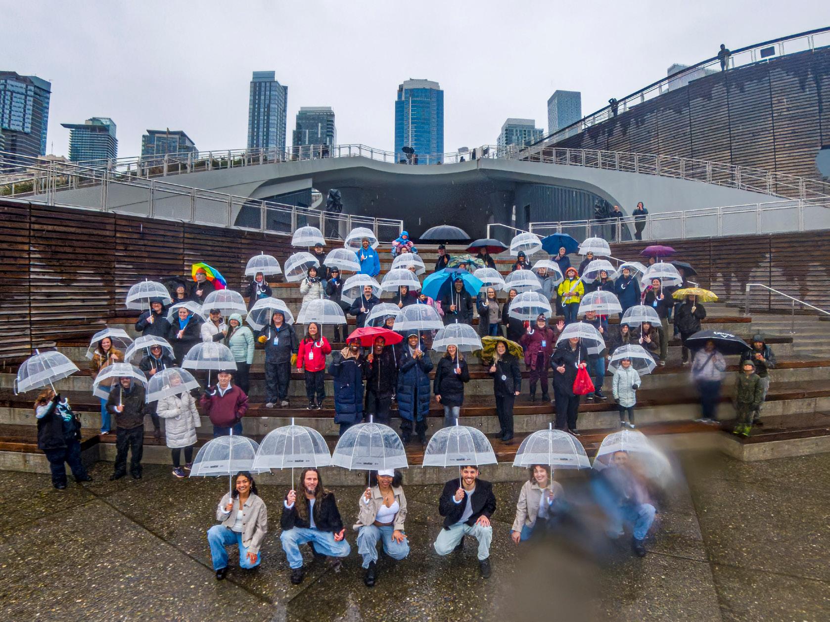 where organizers staged the “Umbrella Uprising” — a smiling group photo of attendees raising their branded umbrellas in unison. Both playful and symbolic, they served as a reminder that Seattleites don’t hide from the rain; they accessorize for it.