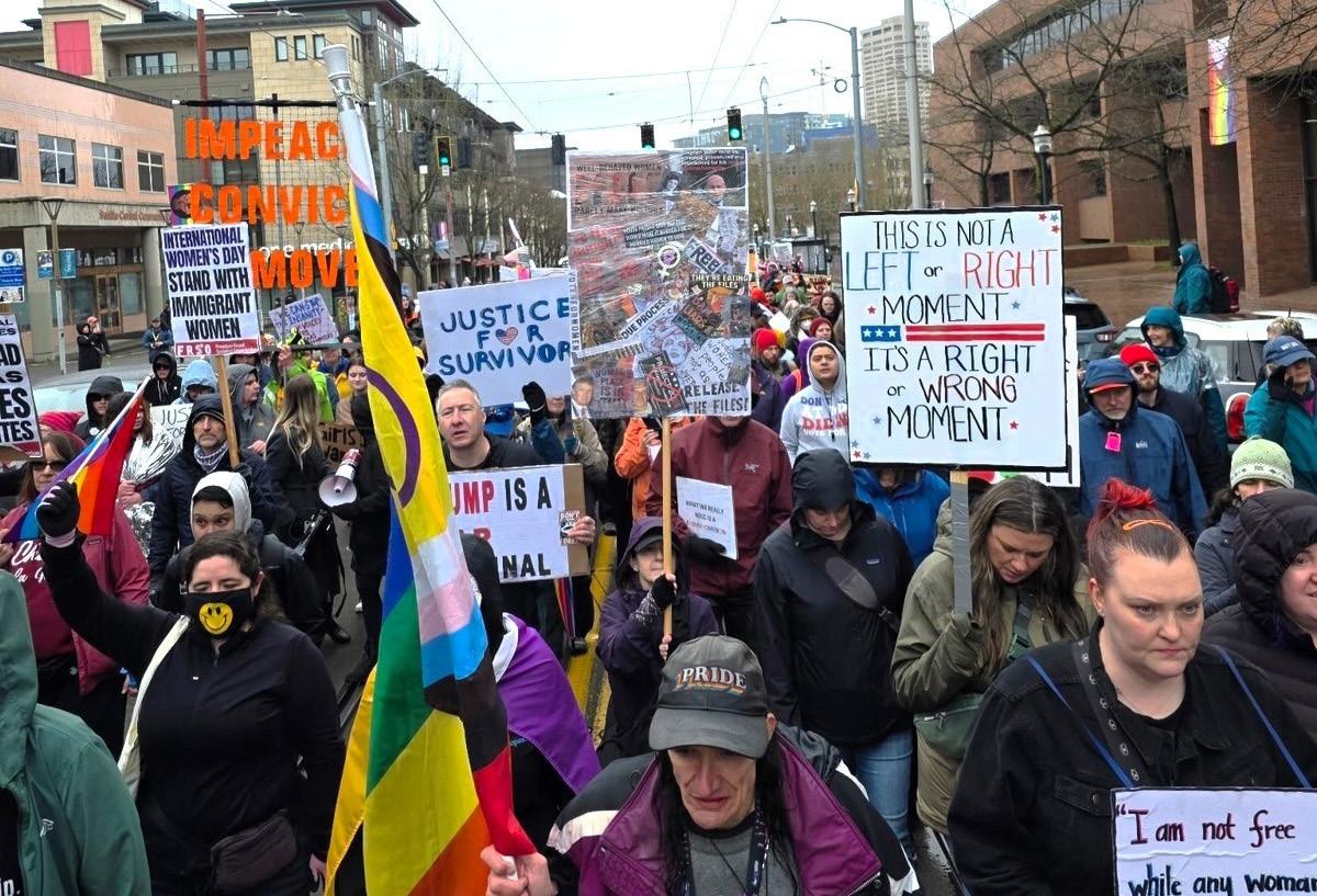 The march was organized by a coalition of local advocacy groups including Seattle Indivisible, Defund Musk, Evergreen Resistance, Gender Justice League, National Organization for Women, and Troublemakers, along with several other organizations representing the diversity and activism of the Seattle area. Their collaboration reflected the wide range of issues motivating participants—from reproductive rights and gender justice to economic and political power.
