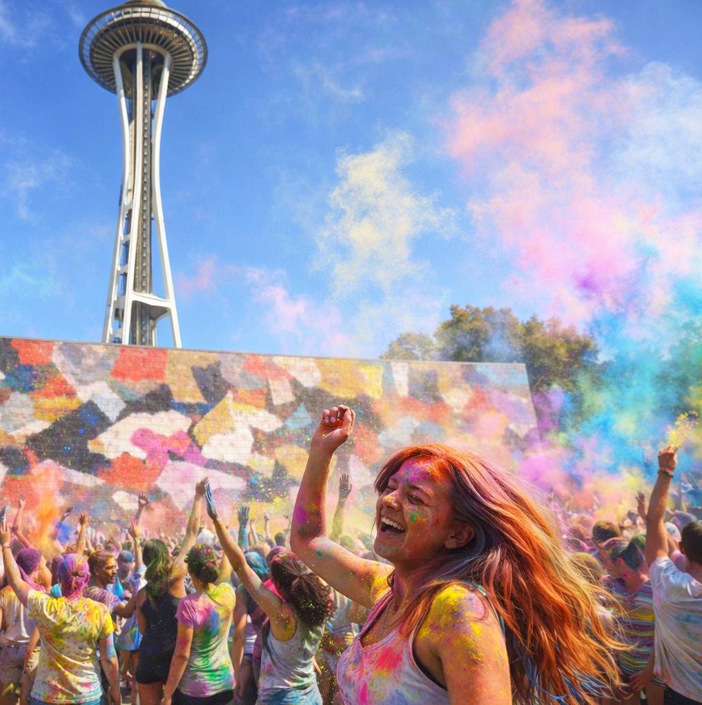 Get ready for one of the most colorful events of the year. The Seattle Color Festival returns to the Mural Amphitheater from 11 a.m. to 4 p.m., inviting the community to celebrate Holi-the festival of colors-right next to the Space Needle.