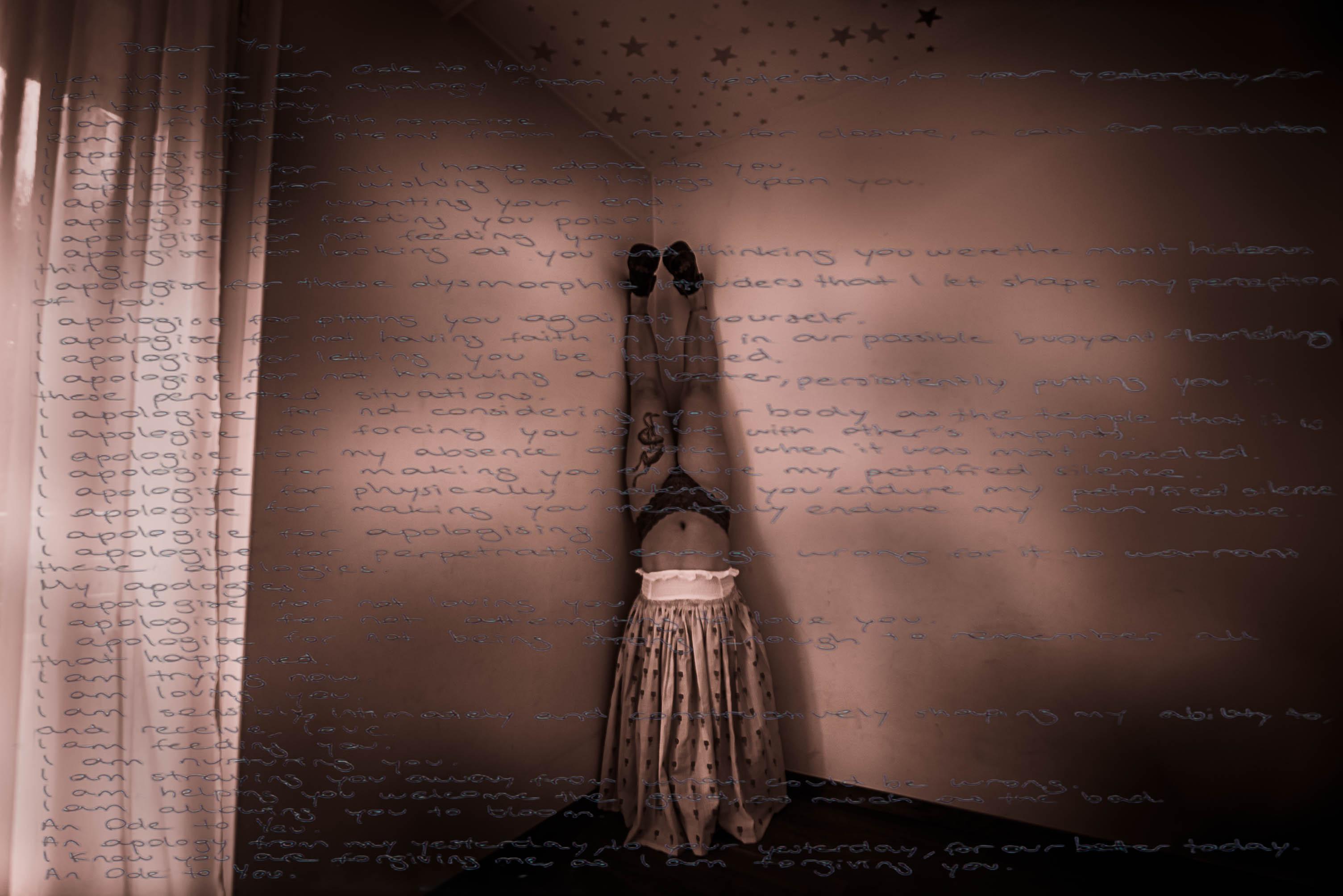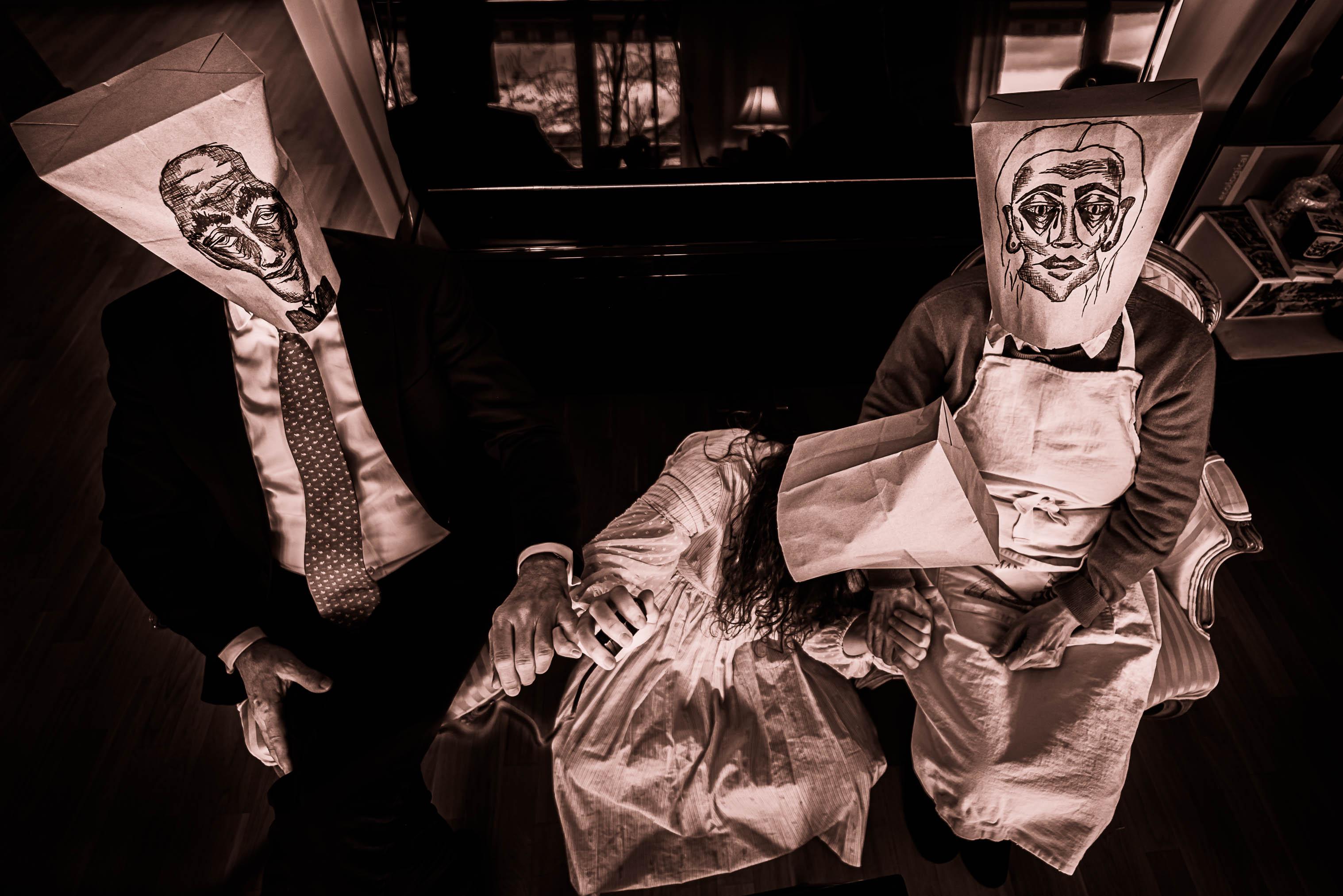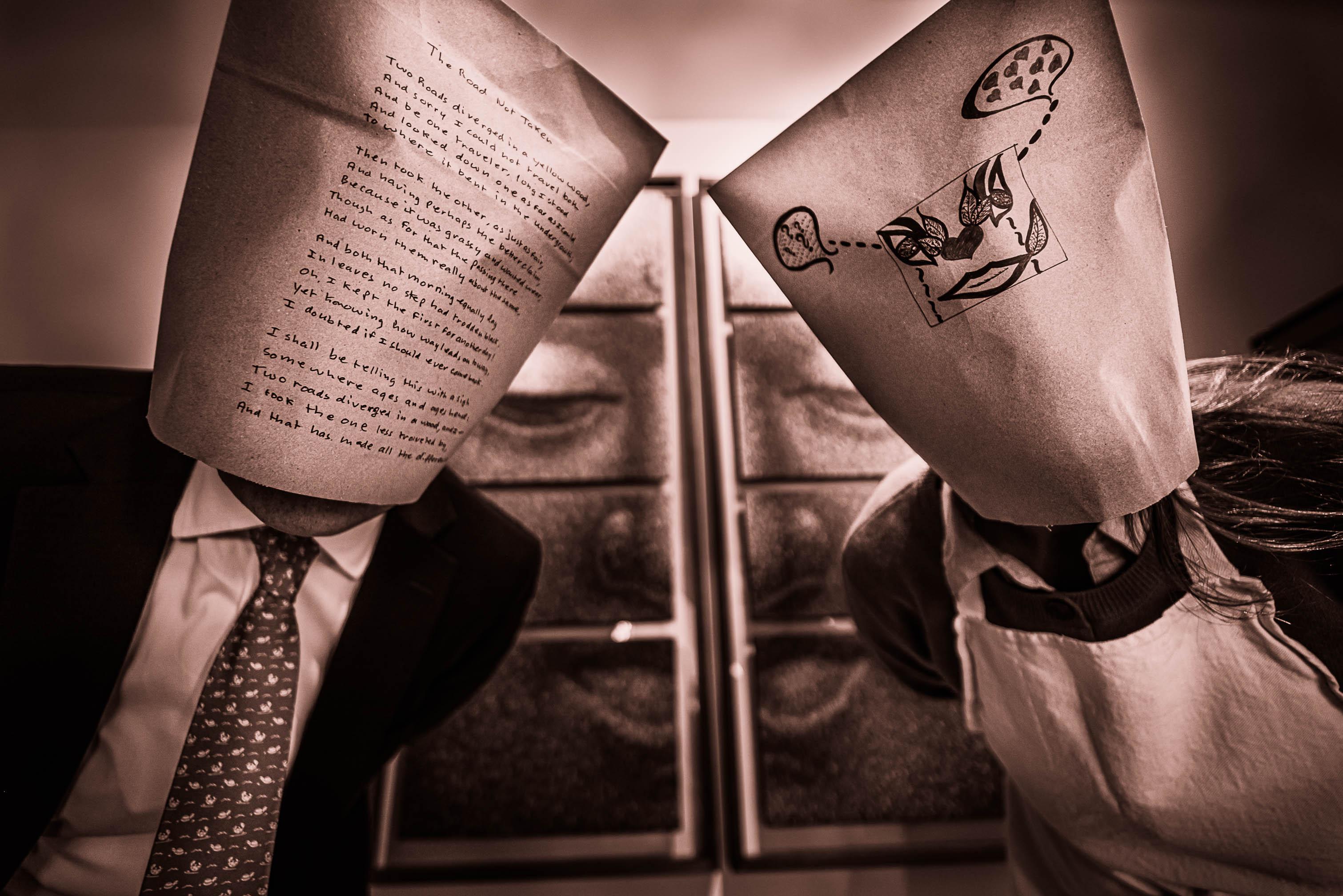 A biographical portrait of self, recollecting the period of adolescence. Visual reproduction and intimate narration of absent and obscure episodes. Summoning key moments, sentiments and dynamics. Induced-escapism, self-destruction, reckless resilience. Remorseful and dismal introspection of a Self, reflecting on a past Self. The idea of illustrations on paper bags draws inspiration from the works of The Mask Series by Inge Morath and Saul Steinberg.