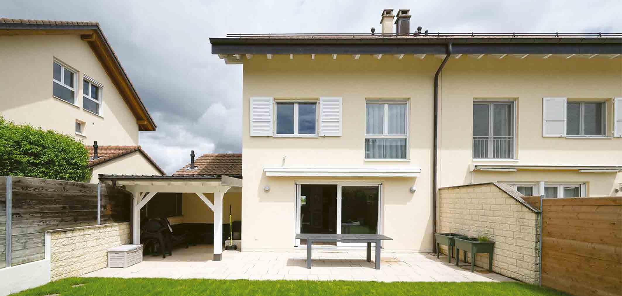 Rénovée en 2023, agréable villa mitoyenne de 6.5 pièces avec un garage et deux places de parc extérieures.