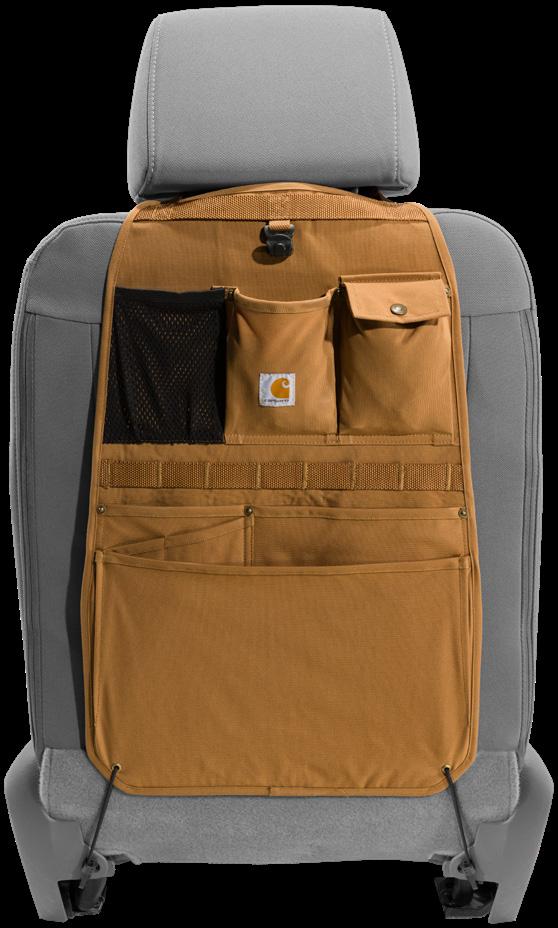 Designed to allow you to use the most common built-in features of your vehicle, such as; arm rests, cup holders, built in seat pockets, and seat belts.