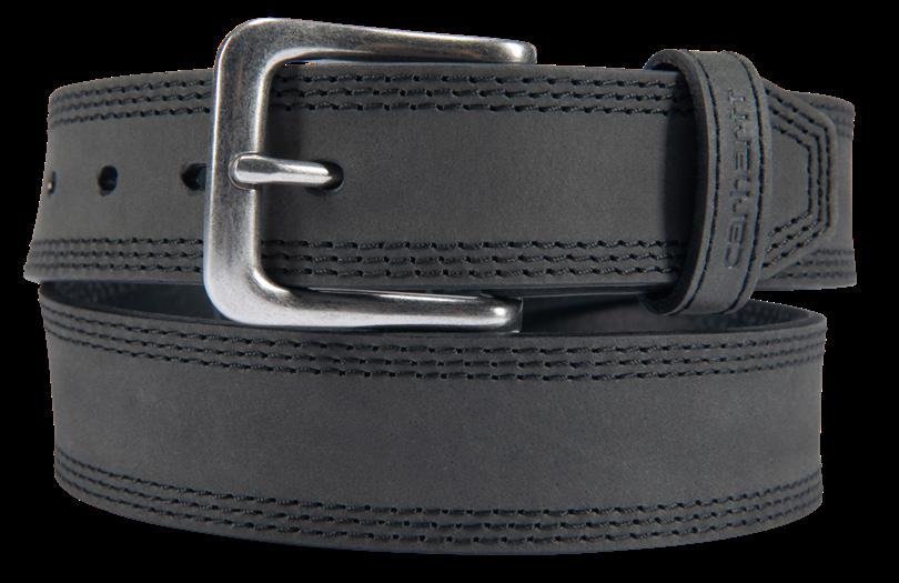 Updated design replaces snap fasteners with Chicago screws to facilitate buckle changes Carhartt wordmark on keeper loop