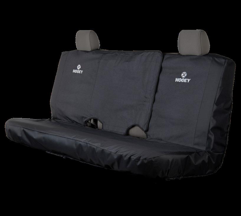600-denier polyester with water resistant coating · Protects against stains and damage · Embroidered "Hooey" logo · Two-piece design SAFE-SEAM allows for unhindered airbag deployment · Built-in access One seat and headrest cover per retail package · Foam backing