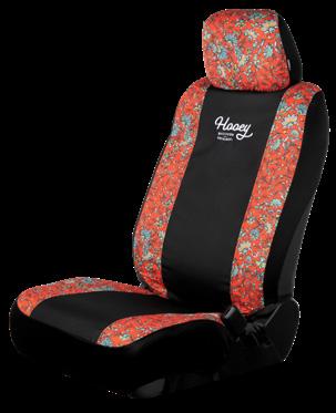 300-denier polyester with water resistant coating · Protects against stains and damage · Embroidered "Hooey" logo · Two-piece design · SAFE-SEAM allows for unhindered airbag deployment · Built-in access · One seat and headrest cover per retail package
