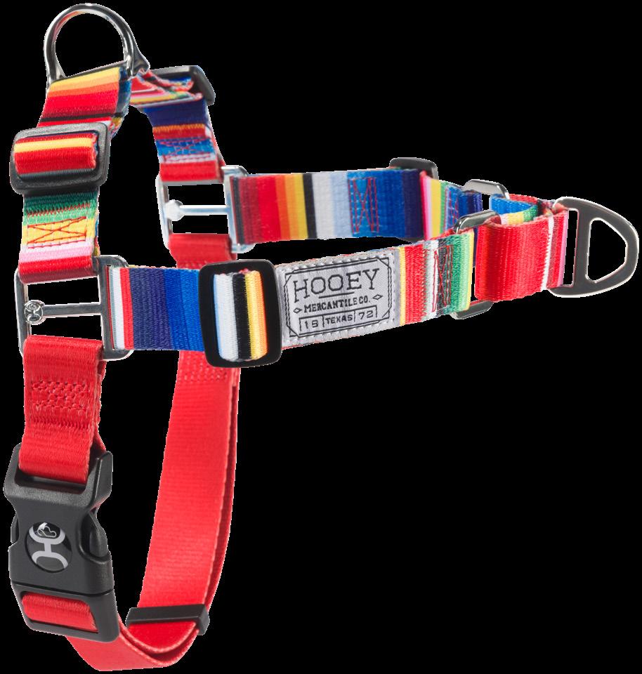 · Printed webbing · Yoke style harness · Contrast color belly strap for easy identification · Front chest strap for no pull function