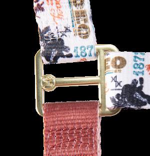 Printed polyester webbing · Metal hardware · Metal sliding D-ring for multiple attachment · Metal swivel clip · Additional metal swivel clip at handle for multiple attachment · HD woven label OS 6' X 1˝ COLOR PART # SIZE MSRP MOQ JUST COW P000045520199 OS $19.99 2 COLOR PART # SIZE MSRP MOQ NAVAJO PRINT P000045590599 OS $19.99 2