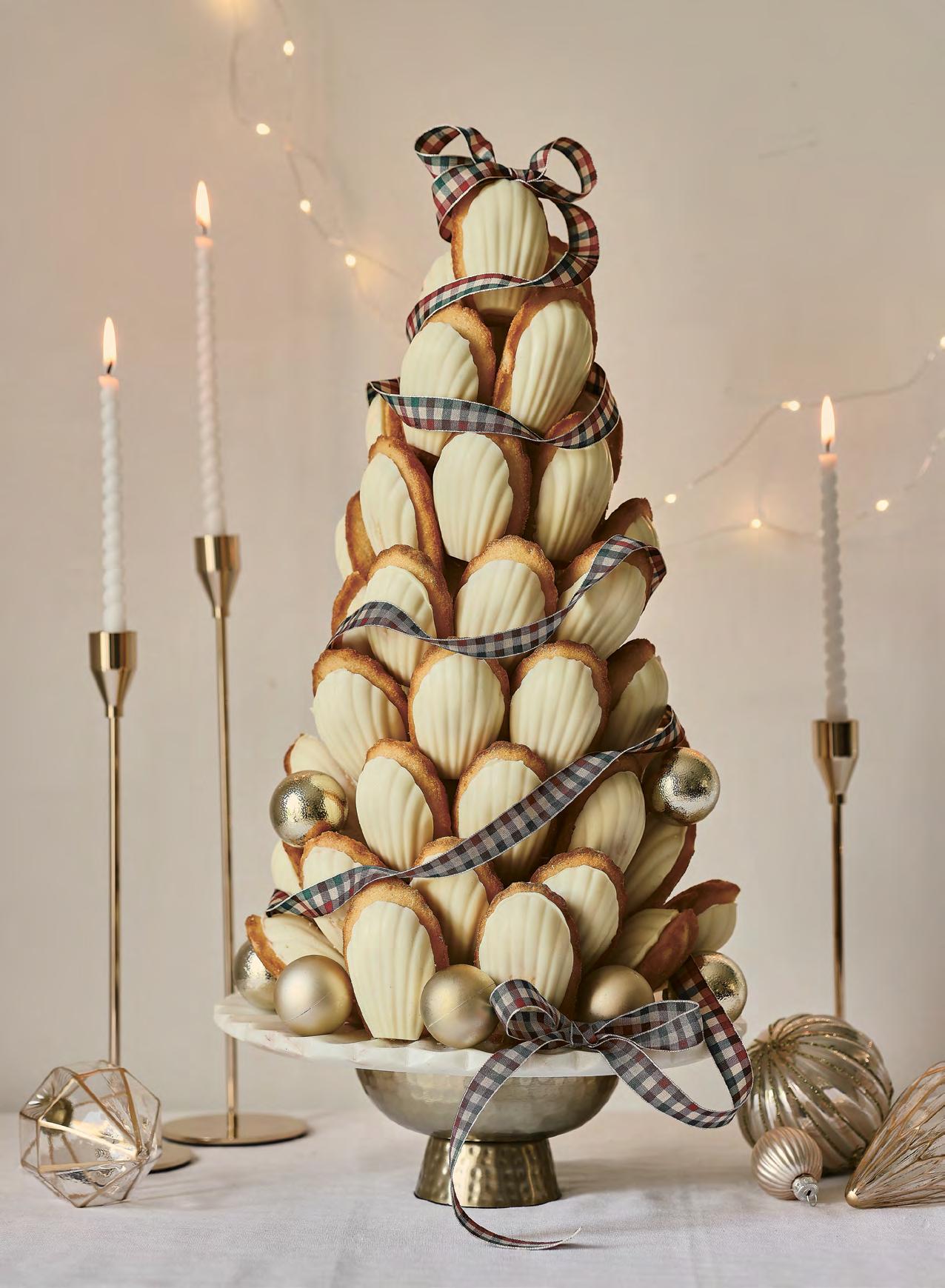 Dazzle the table with centrepieces that sparkle with magic. From a creamy chocolate mousse tower and luscious layered cake to an easy yet impressive madeleine tower, these desserts come all tied up in a flourish of festive ribbons and bows