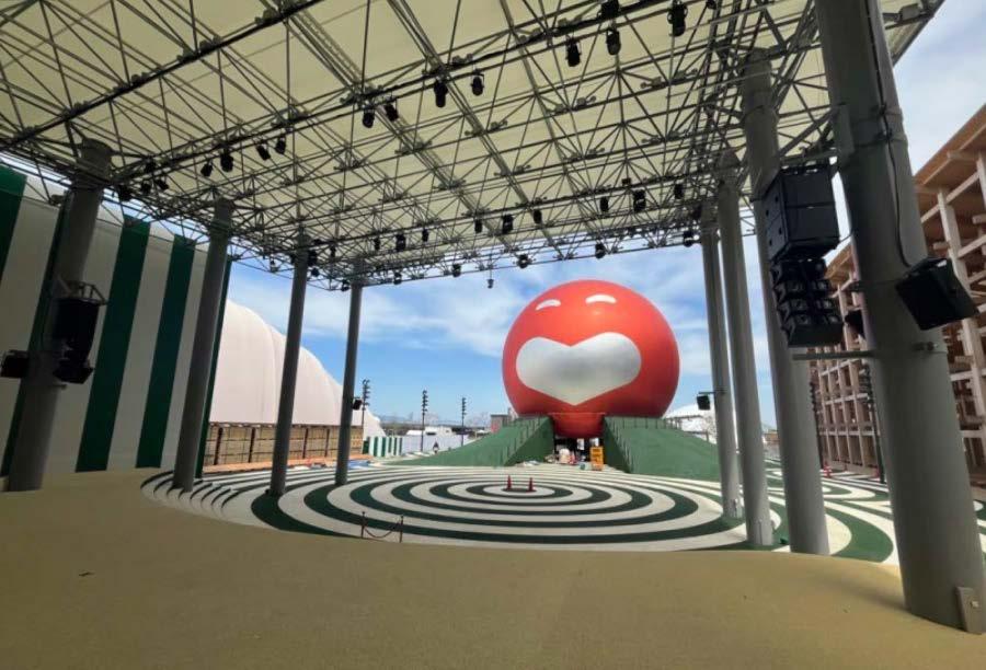 In addition to more than 250 of its speakers installed in a spectacular visitor experience at the France Pavilion, GEO M10 and P12 systems from French sound innovators NEXO are also installed at 'Ashita Hiroba' in the Osaka-based Yoshimoto Kogyo Holdings Co., Ltd.'s "Yoshimoto waraii myraii pavilion," one of thirteen exhibits by private companies and organisations at the Expo.