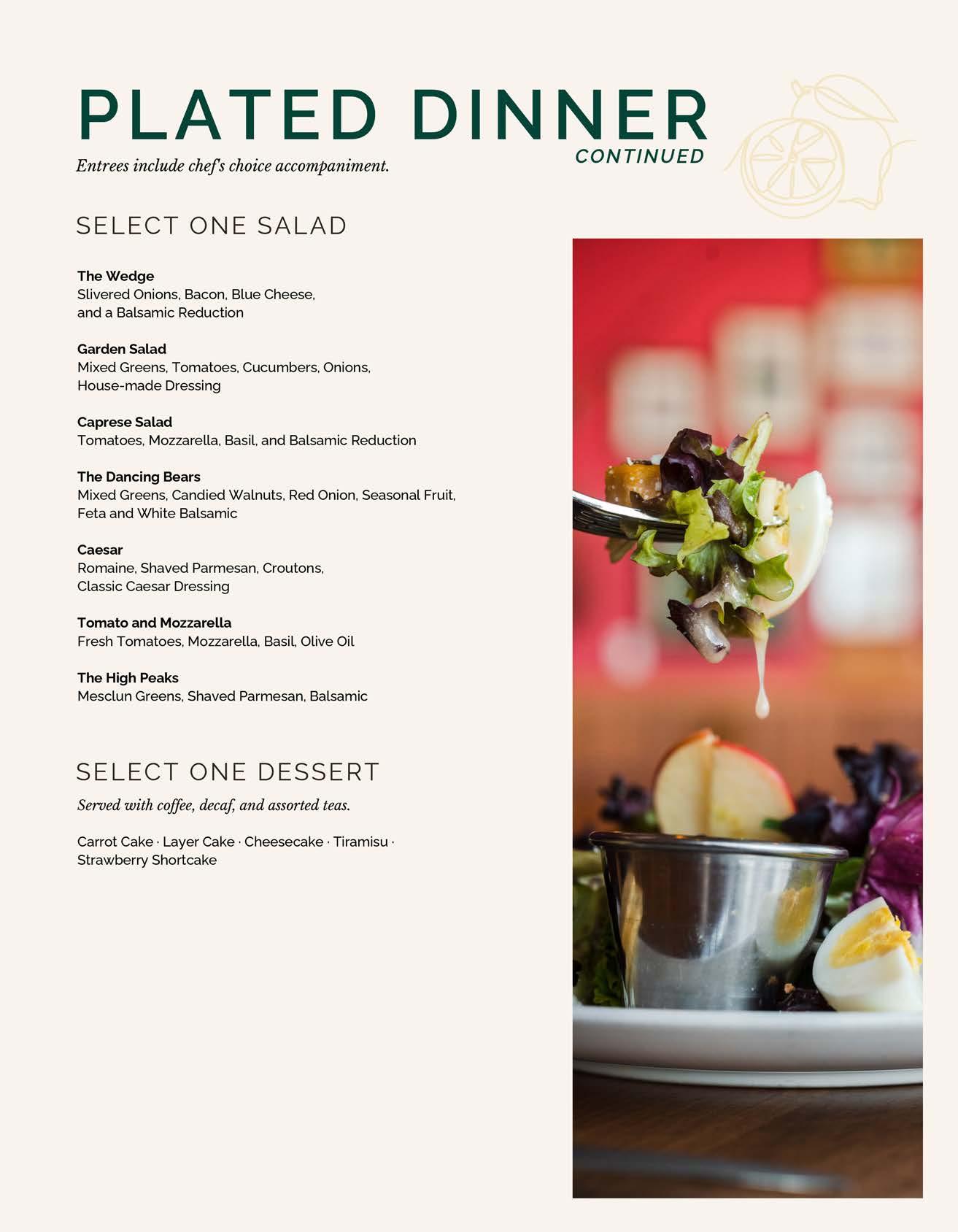 High Peaks Resort Catering Menus
