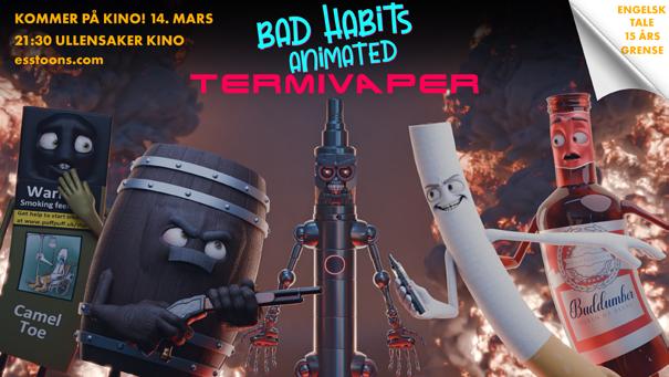 21.30–22.00 Kinopremiere! Bad Habits Animated – Termivaper Ullensaker kino. Humoristisk animasjonsfilm om våre dårlige vaner. Produsert av norske Espen S. Svedman fra Jessheim. Opplev premieren med introduksjon fra skaperen bak serien med over 600 000 følgere på TikTok. Gratis billetter på universe.com/explore. Aldersgrense: 15 år. Arr: Esstoons og Fontenehuset Ullensaker