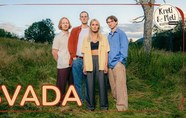 16.00 SVADA // Ettermiddagsjazz Kulturbanken Kreti & Pleti. Med nære tekster, fengende riff og klangfulle melodier beveger jazzkvartetten Svada seg i skjæringspunktet mellom den nordiske jazztradisjonen og norsk visepop. Spennet mellom det uplanlagte kaotiske og det nøye gjennomarbeidede er kjernen i bandets uttrykk. SVADA består av: Elisabeth Krohn-Hansen – vokal og låtskriver, Paul Aamodt Brandal – piano og låtskriver, Mikkel Bordal – bass, Viktor Ognøy Ekeløve – trommer. Bill: 250,-/ student 130,-.
