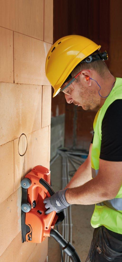 Potente ranuradora de alto rendimiento para uso intensivo en hormigón y mampostería para trabajos intensivos 2.500W. Discos FULL SLOT: para ladrillo y hormigón ligero (resistencia < 15 MPa).