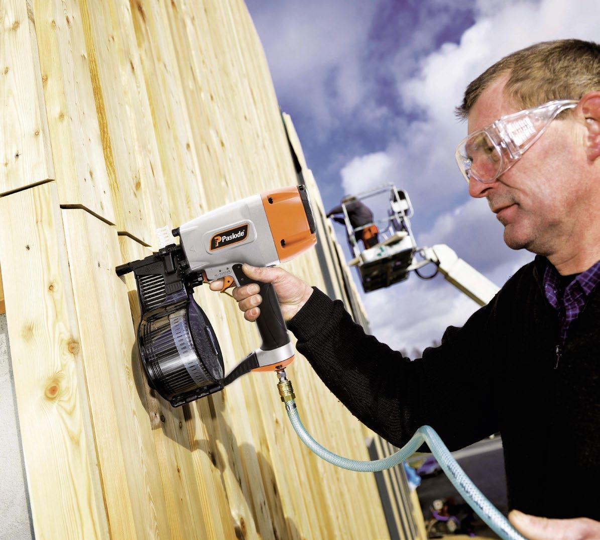 Soluciones de clavado y grapado neumático para líneas automatizadas de construcción industrializada Off-Site.