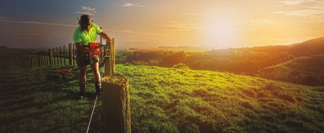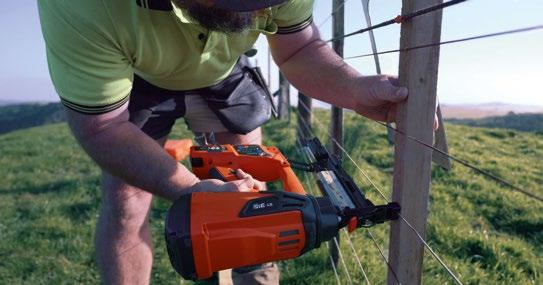 Herramientas a gas para el grapado del alambre en postes de madera en cercados y plantaciones agrarias.