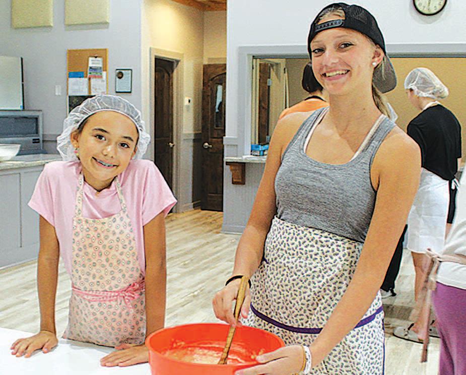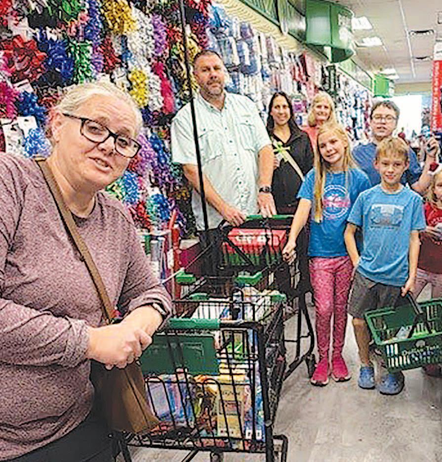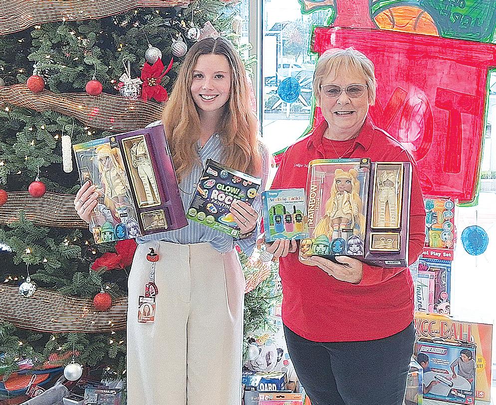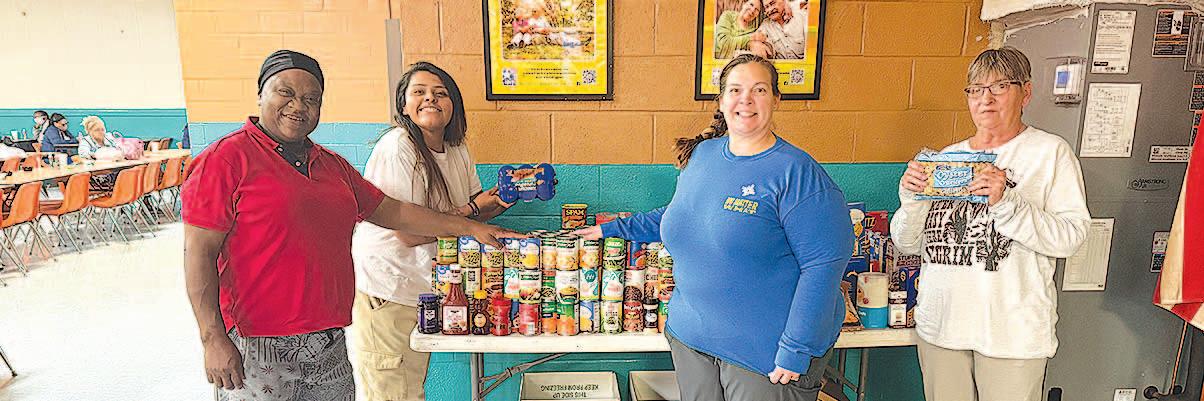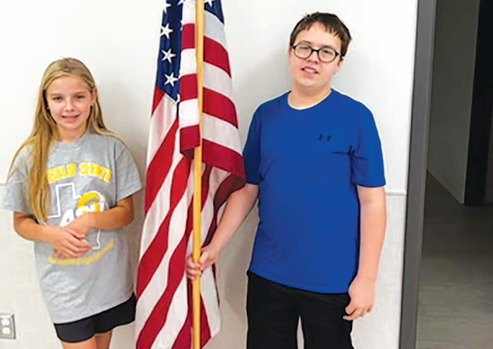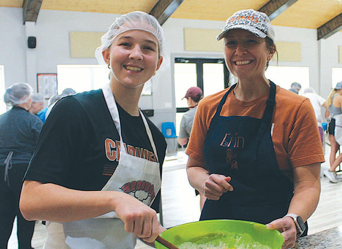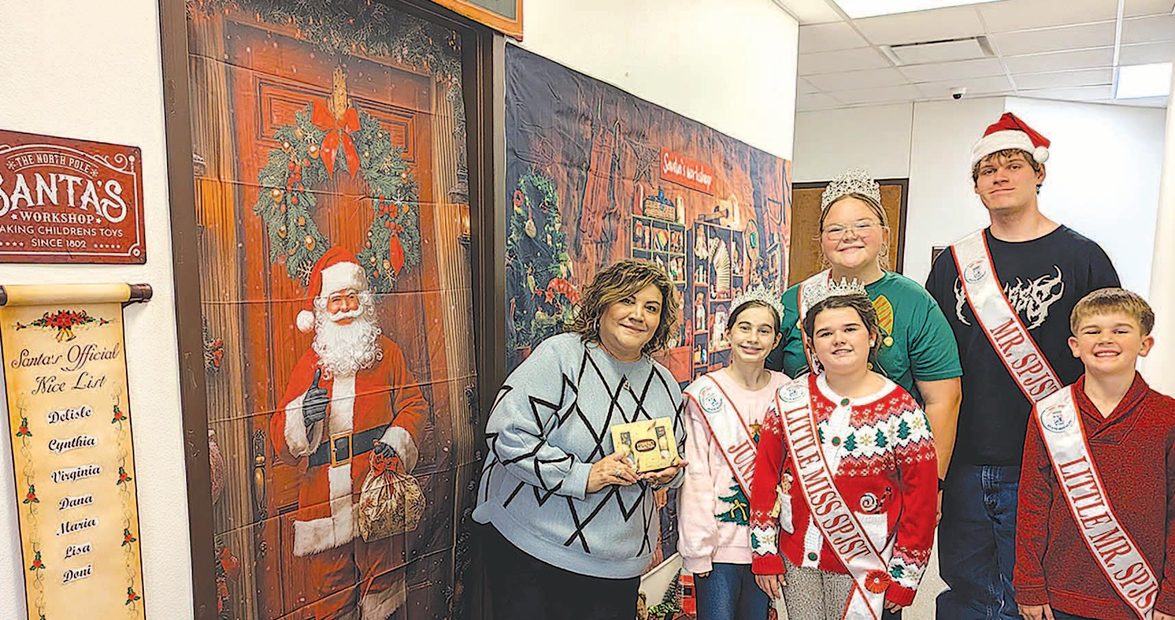 Miss SPJST Paetyn Beckendorf is pictured with canned food donations she helped collect, and Mr. SPJST Levi McAdams fills Operation Christmas Child boxes with his youth leader, Dana McAdams. Their project updates appear on page 26.