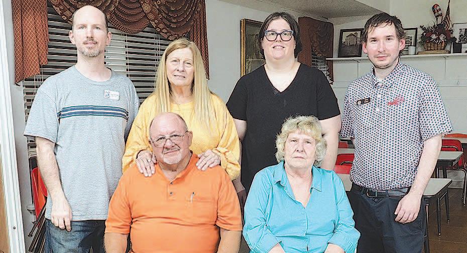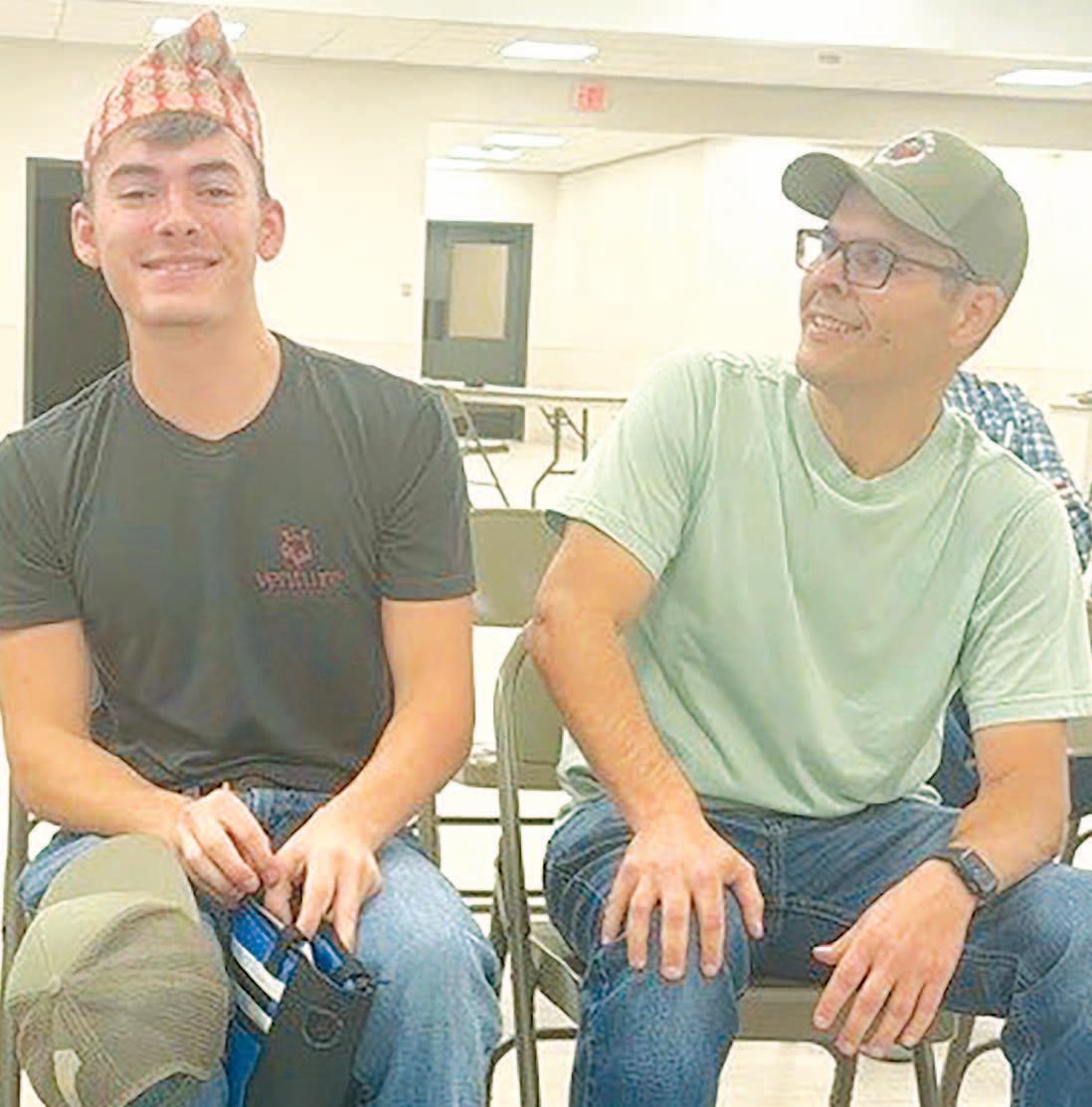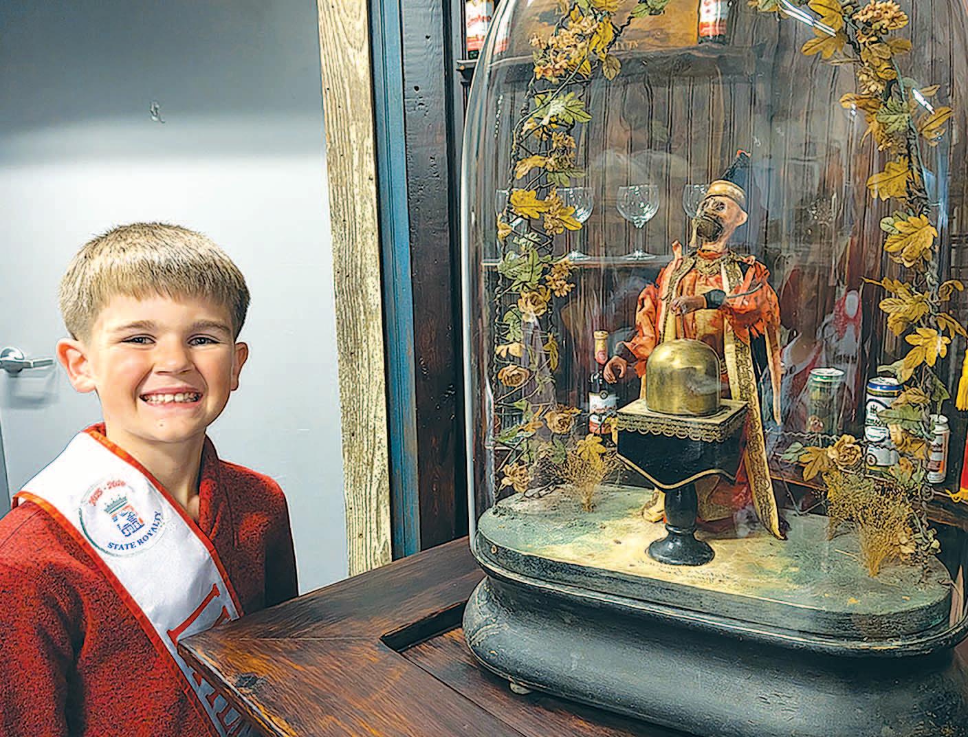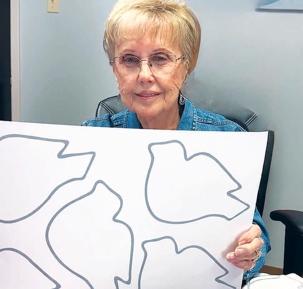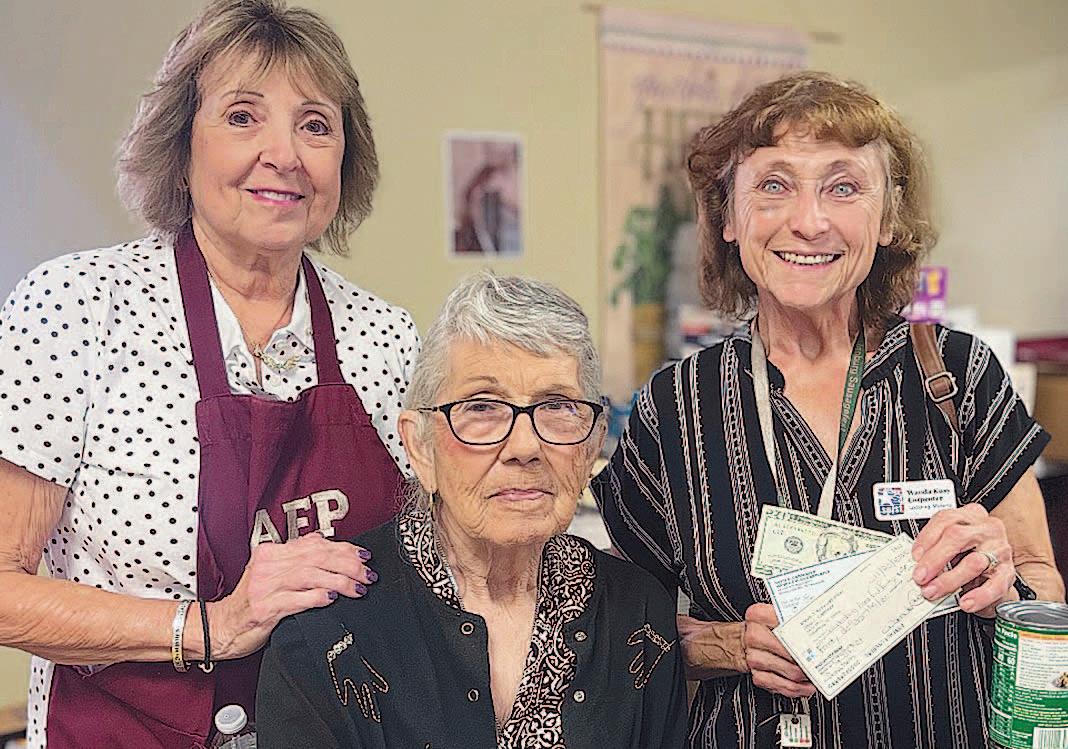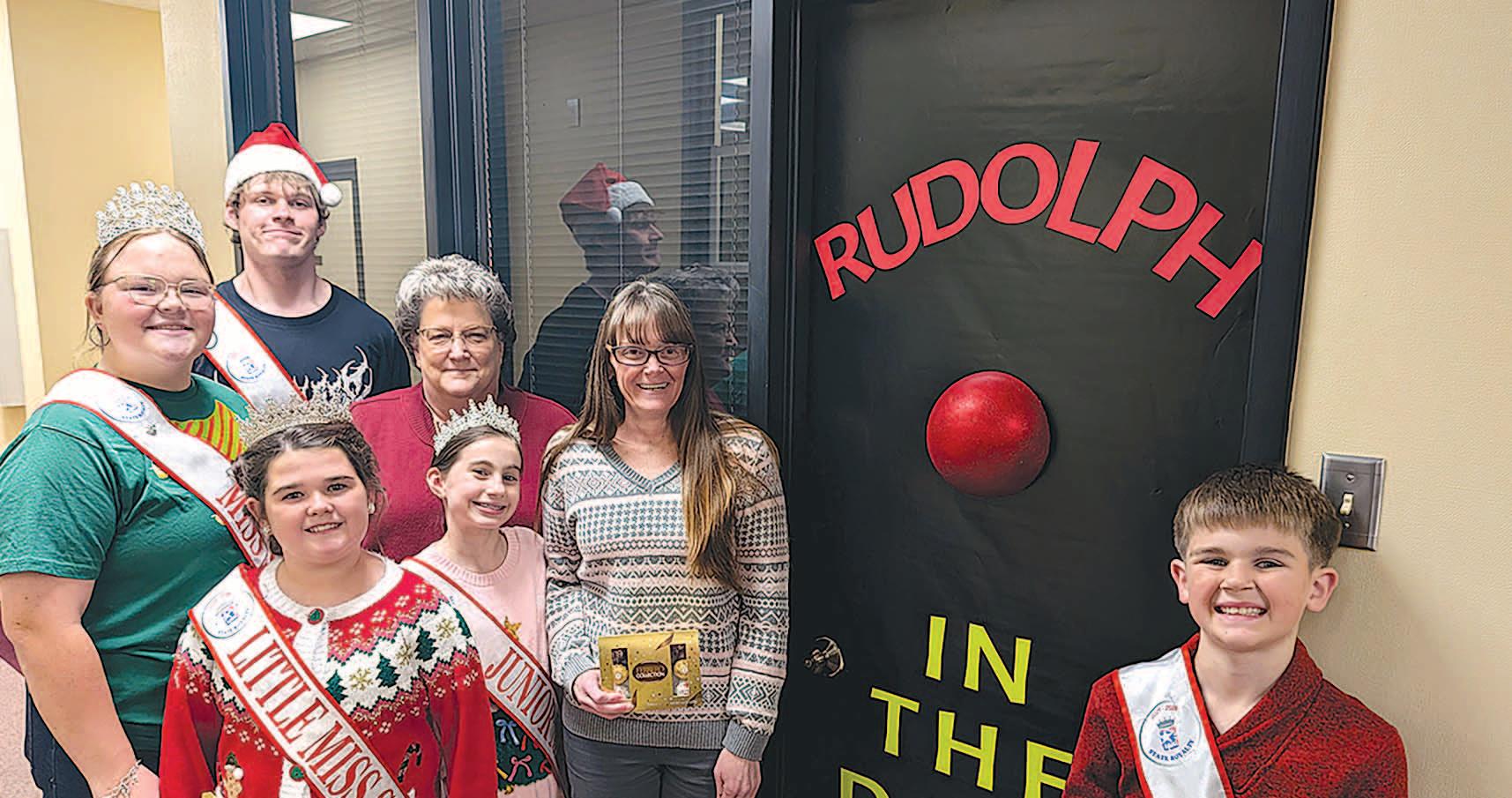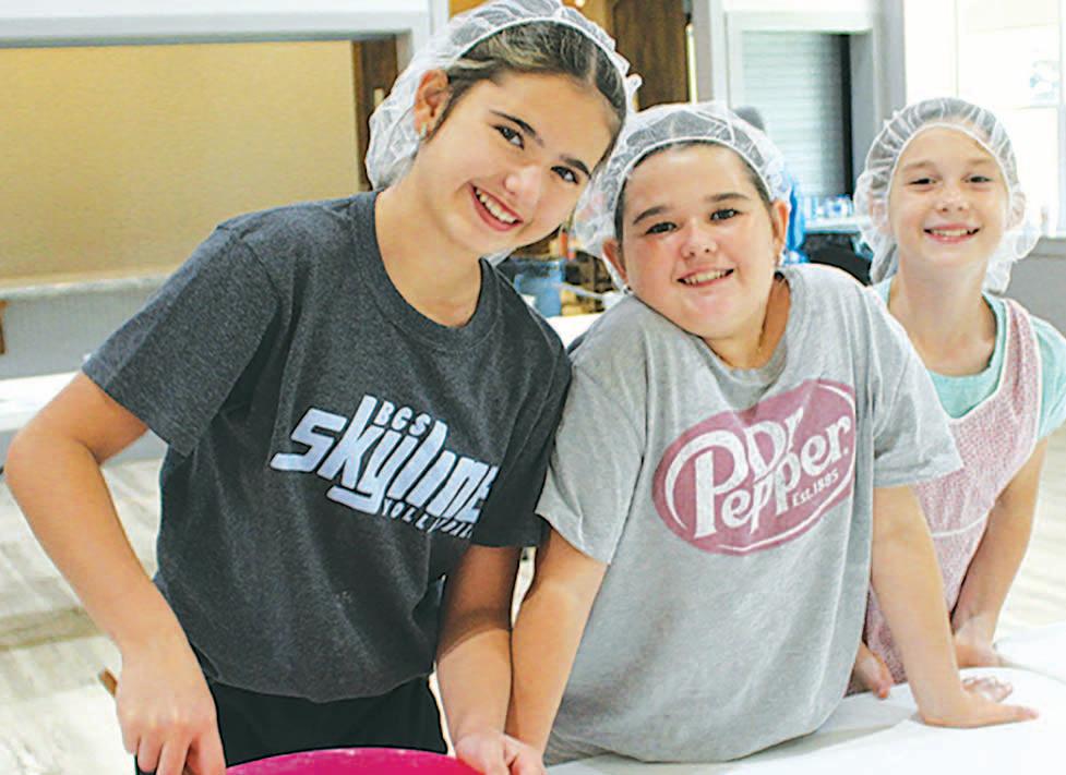 Miss SPJST Paetyn Beckendorf is pictured with canned food donations she helped collect, and Mr. SPJST Levi McAdams fills Operation Christmas Child boxes with his youth leader, Dana McAdams. Their project updates appear on page 26.