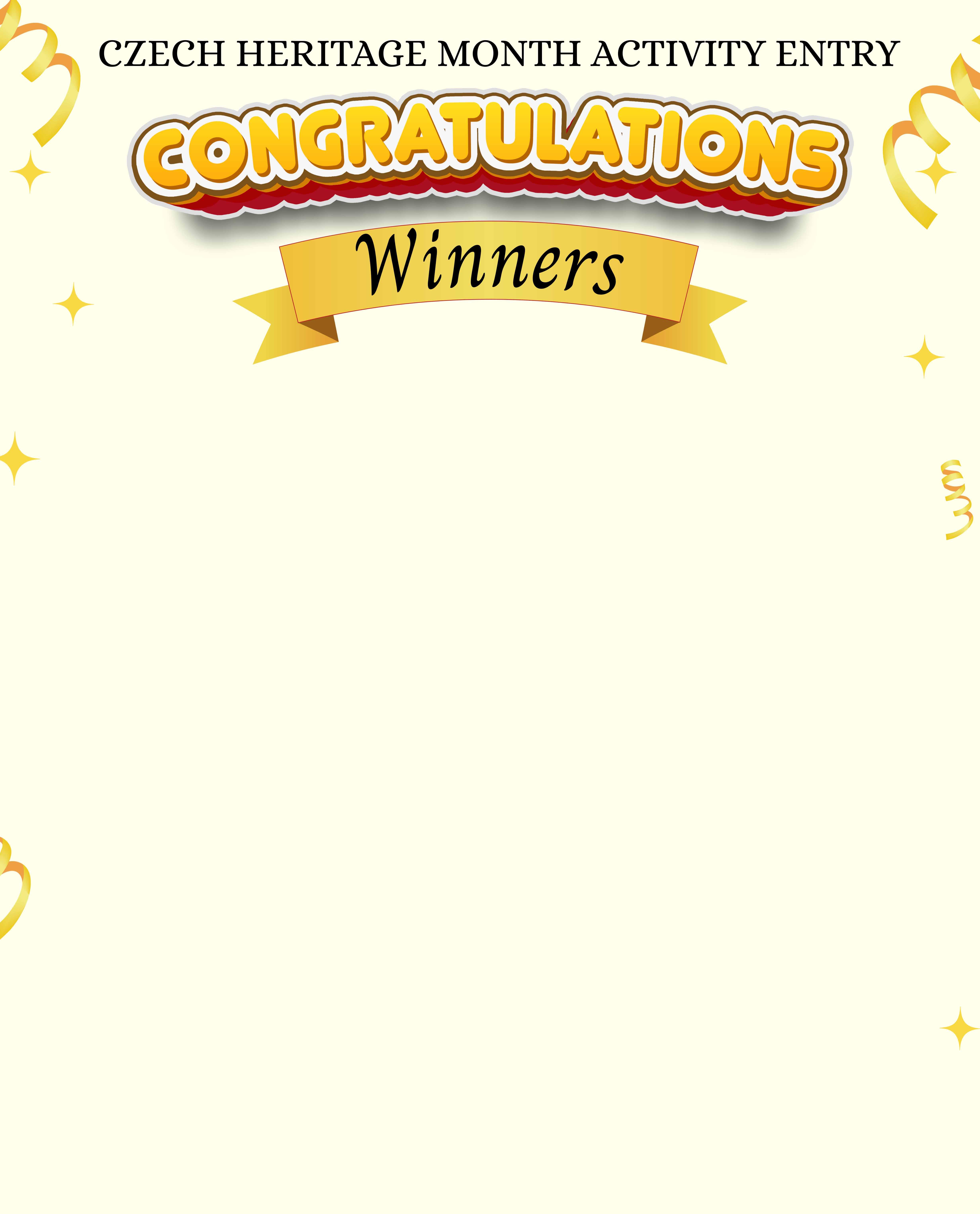 Winners of the October Vestnik Czech History Month contest are determined by a random drawing from all eligible participants who submitted a completed activity.