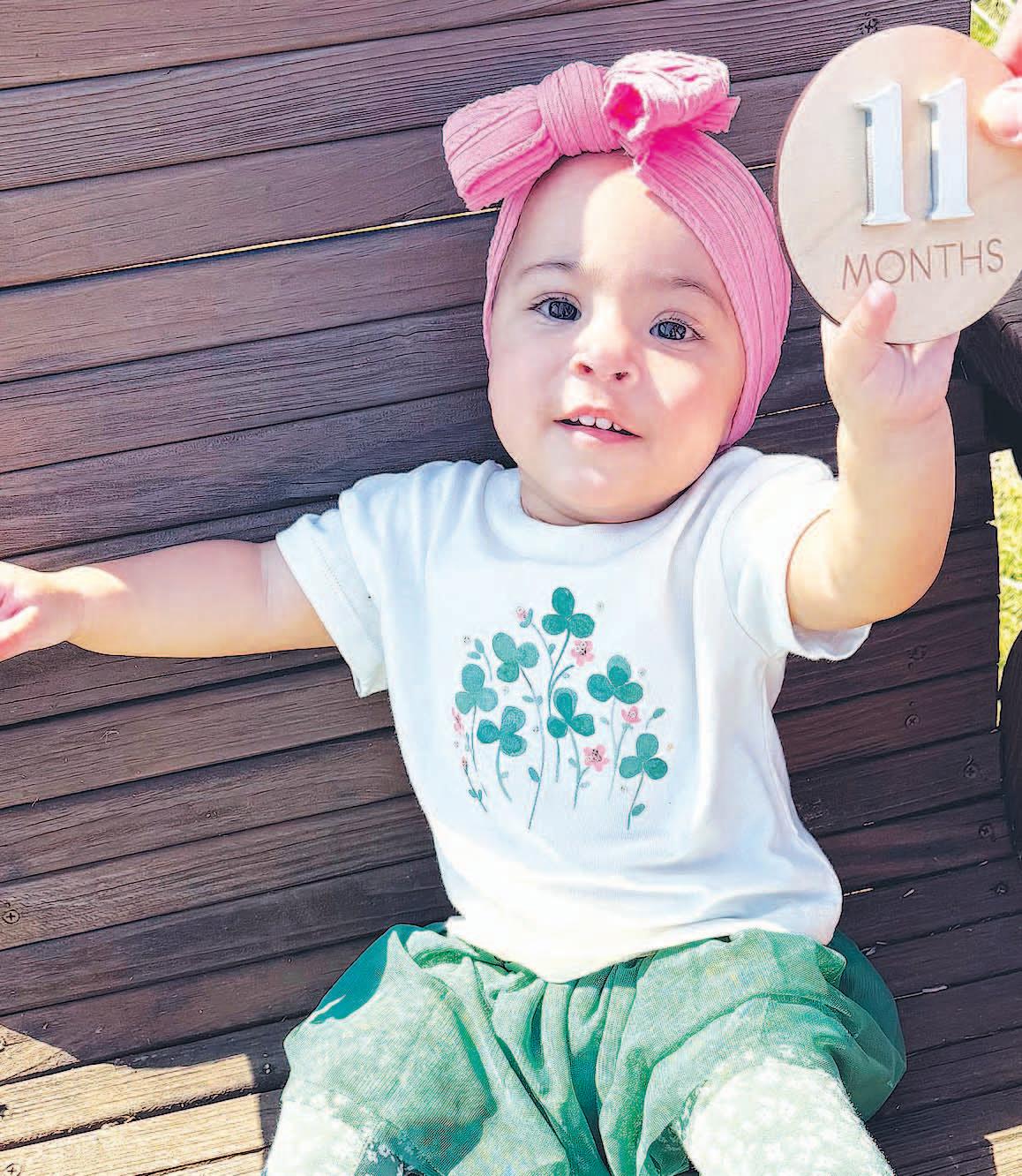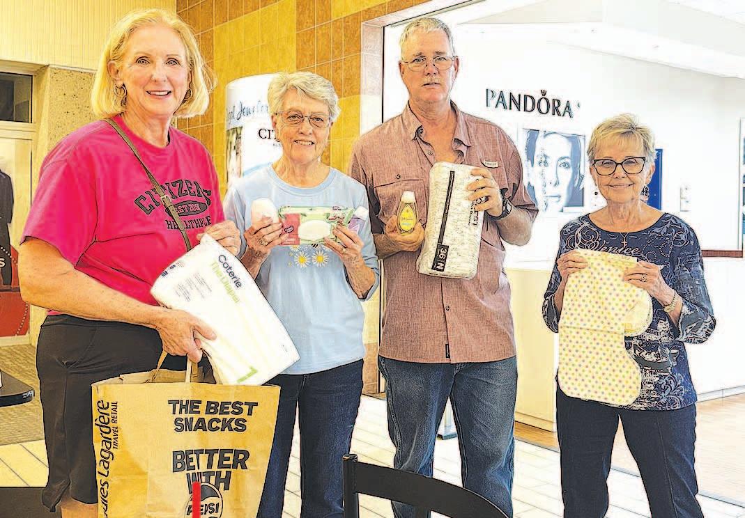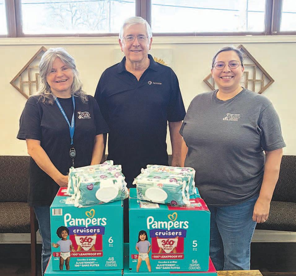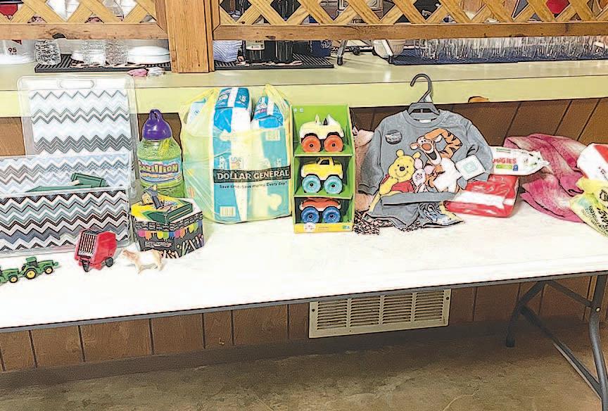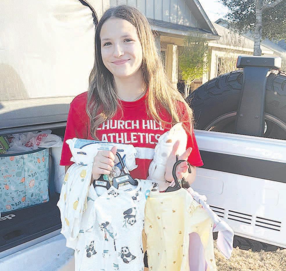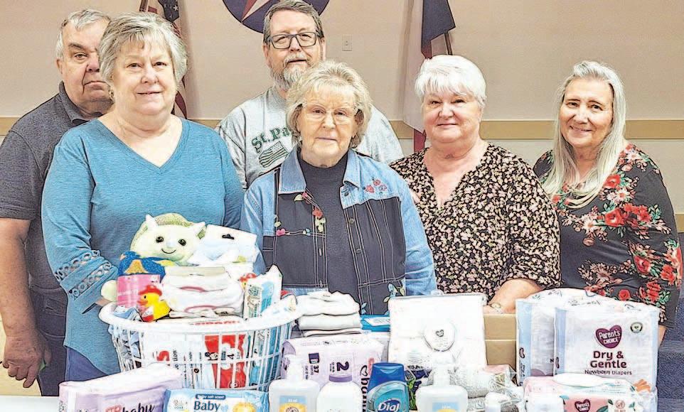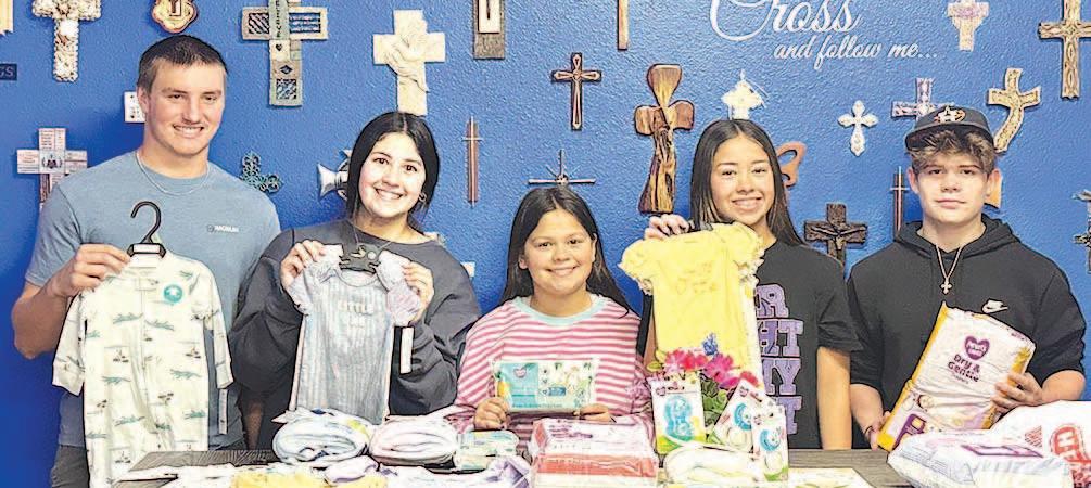 Lodges and youth groups across the state are taking part in the “Baby Bundle” Caring Challenge by collecting essentials for shelters and babies in need. At left, Lily Haag-Howard displays items donated by Lodge 185, New Braunfels to the local crisis center.